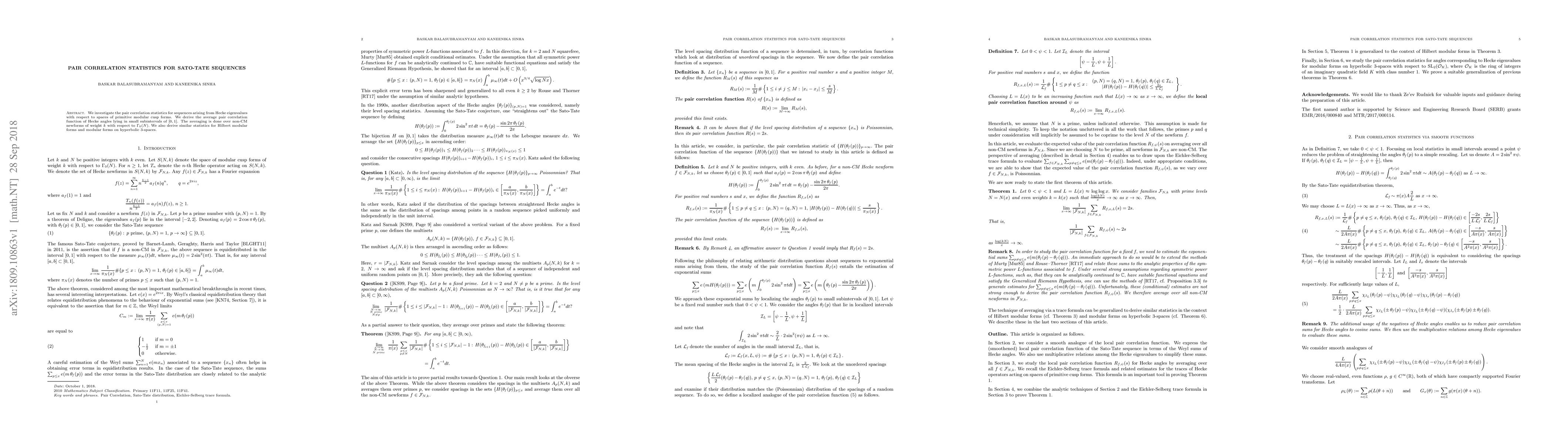 This paper examines the pair correlation statistics for sequences derived from Hecke eigenvalues of modular cusp forms, deriving the average pair correlation function for Hecke angles in small subintervals. It also extends these findings to Hilbert modular forms and modular forms on hyperbolic 3-spaces.