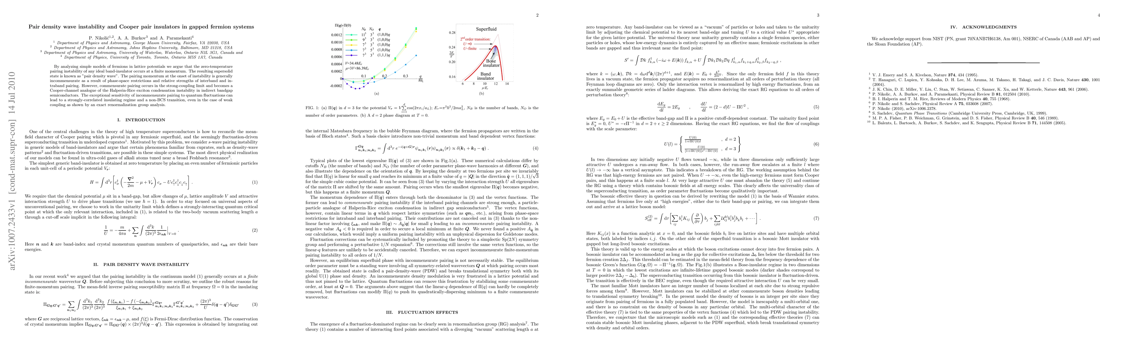 By analyzing simple models of fermions in lattice potentials we argue that the zero-temperature pairing instability of any ideal band-insulator occurs at a finite momentum. The resulting supersolid state is known as "pair density wave". The pairing momentum at the onset of instability is generally incommensurate as a result of phase-space restrictions and relative strengths of interband and intraband pairing. However, commensurate pairing occurs in the strong-coupling limit and becomes a Cooper-channel analogue of the Halperin-Rice exciton condensation instability in indirect bandgap semiconductors. The exceptional sensitivity of incommensurate pairing to quantum fluctuations can lead to a strongly-correlated insulating regime and a non-BCS transition, even in the case of weak coupling as shown by an exact renormalization group analysis.