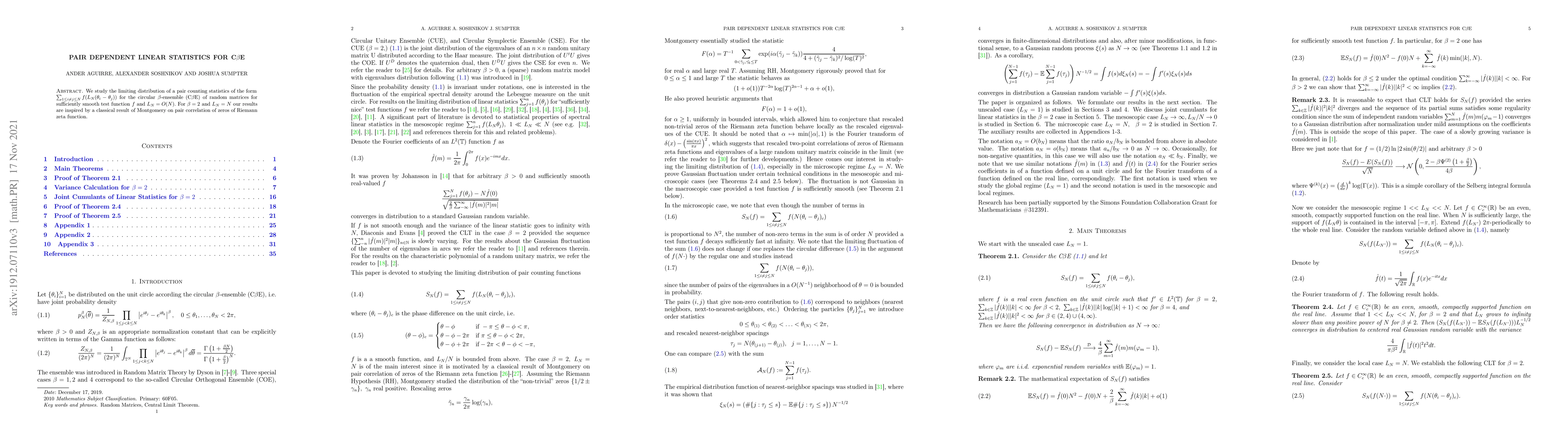 The paper investigates the limiting distribution of pair counting statistics for the circular beta ensemble, a type of random matrix, and finds results inspired by classical problems in number theory.