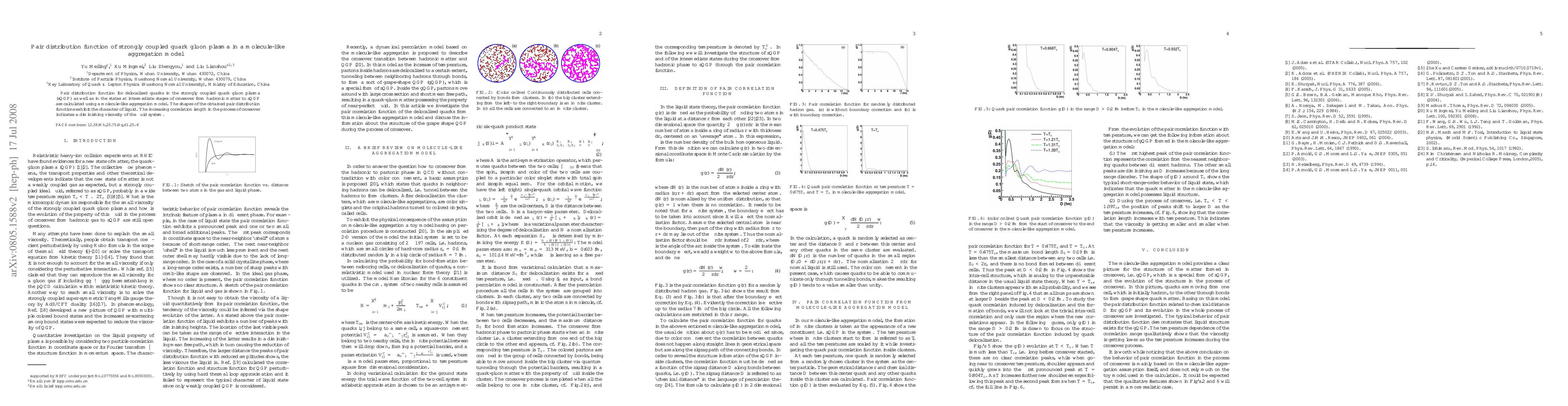 Pair distribution function for delocalized quarks in the strongly coupled quark gluon plasma (sQGP) as well as in the states at intermediate stages of crossover from hadronic matter to sQGP are calculated using a molecule-like aggregation model. The shapes of the obtained pair distribution functions exhibit the character of liquid. The increasing correlation length in the process of crossover indicates a diminishing viscosity of the fluid system.