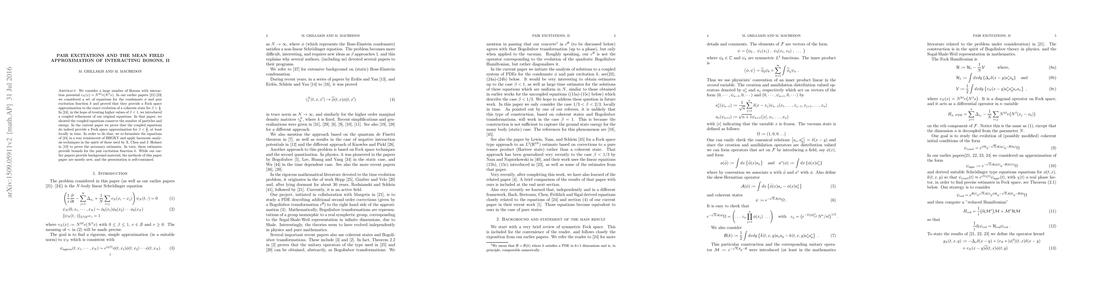 This paper proves that a refined set of equations introduced earlier provides a Fock space approximation for the evolution of interacting Bosons in the range $0 \le \beta < \frac{2}{3}$, at least locally in time. The authors re-formulate the equations and apply harmonic analysis techniques to establish the necessary estimates and bounds for the pair excitation function.