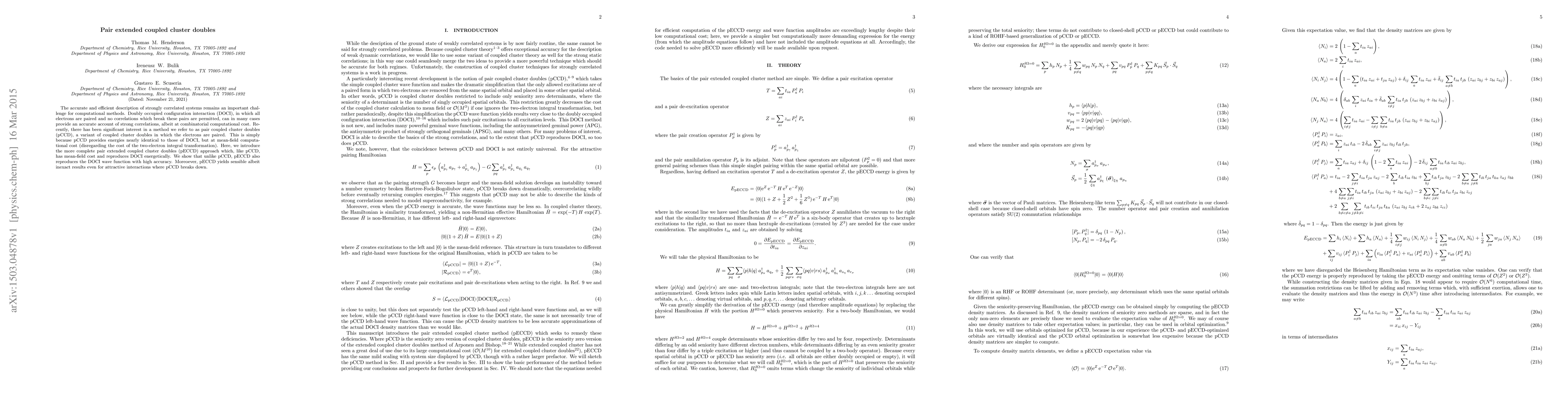 The accurate and efficient description of strongly correlated systems remains an important challenge for computational methods. Doubly occupied configuration interaction (DOCI), in which all electrons are paired and no correlations which break these pairs are permitted, can in many cases provide an accurate account of strong correlations, albeit at combinatorial computational cost. Recently, there has been significant interest in a method we refer to as pair coupled cluster doubles (pCCD), a variant of coupled cluster doubles in which the electrons are paired. This is simply because pCCD provides energies nearly identical to those of DOCI, but at mean-field computational cost (disregarding the cost of the two-electron integral transformation). Here, we introduce the more complete pair extended coupled cluster doubles (pECCD) approach which, like pCCD, has mean-field cost and reproduces DOCI energetically. We show that unlike pCCD, pECCD also reproduces the DOCI wave function with high accuracy. Moreoever, pECCD yields sensible albeit inexact results even for attractive interactions where pCCD breaks down.