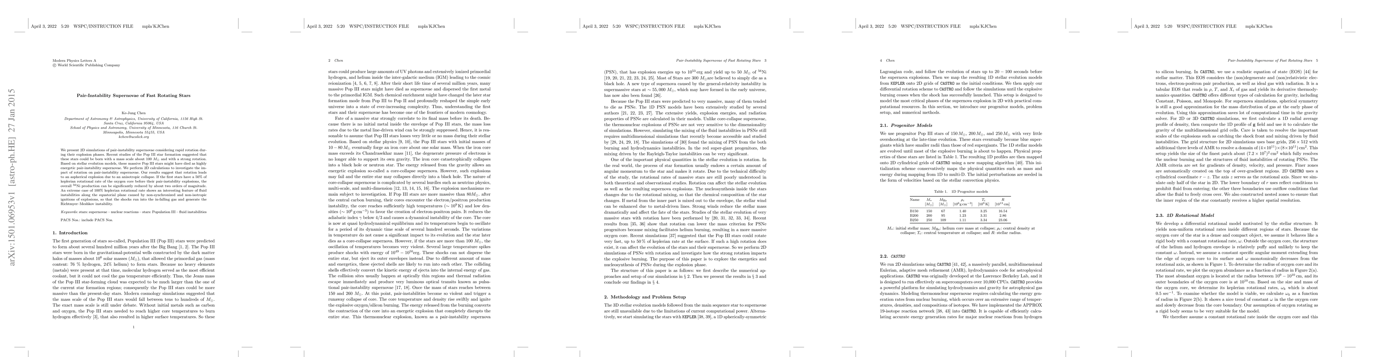 This paper presents 2D simulations of pair-instability supernovae in rapidly rotating stars, suggesting aspherical explosions due to anisotropic collapse. High rotational rates significantly reduce nickel production and can lead to fluid instabilities along the equatorial plane, generating Richtmyer-Meshkov instability.