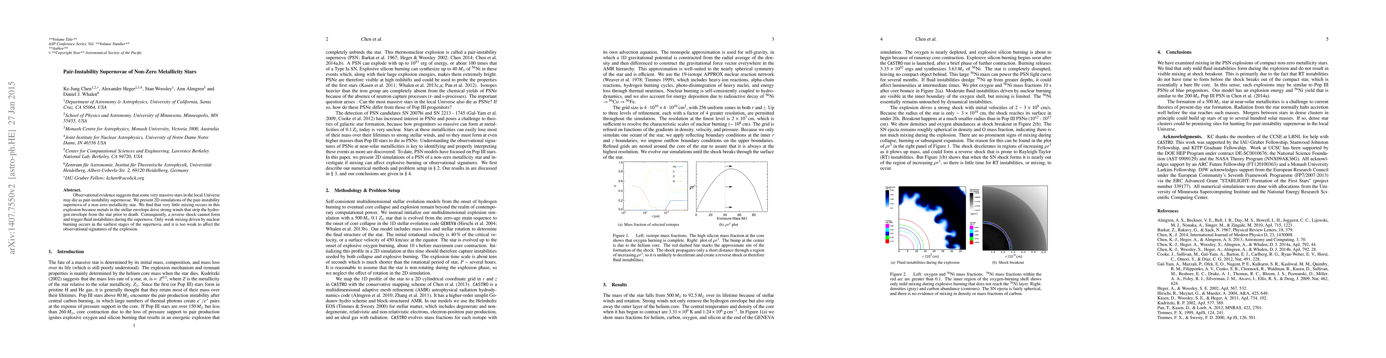 This paper presents 2D simulations of pair-instability supernovae in non-zero metallicity stars, finding minimal mixing due to strong winds stripping the hydrogen envelope. The lack of a reverse shock and fluid instabilities means the supernova's observational signatures remain largely unaffected.