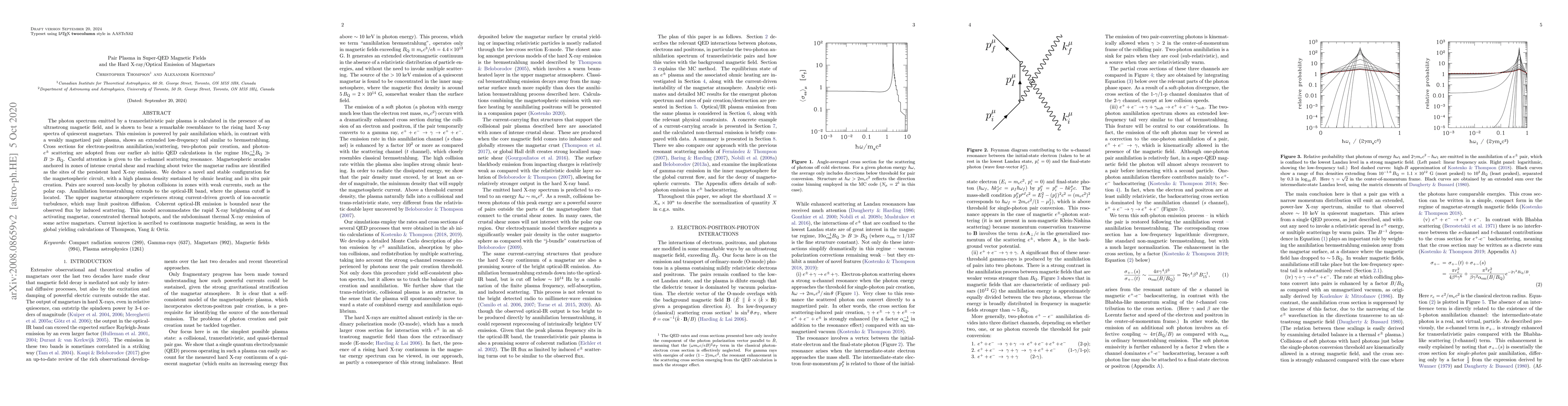 This paper calculates the photon spectrum from a transrelativistic pair plasma in ultrastrong magnetic fields, revealing a resemblance to magnetar's hard X-ray spectra. It identifies magnetospheric arcades as the source of persistent hard X-ray emission, powered by pair annihilation, and explains the rapid X-ray brightening and thermal hotspots in magnetars.