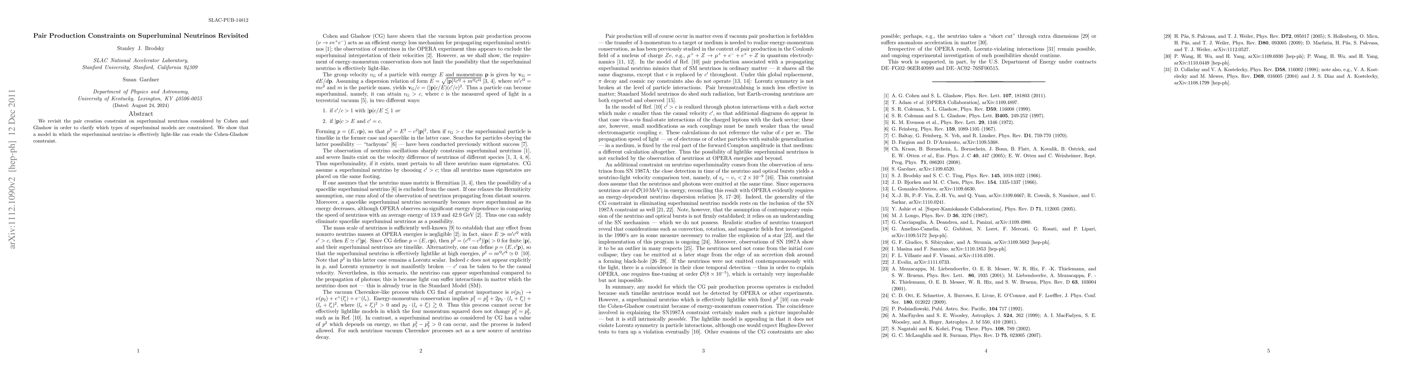 We revisit the pair creation constraint on superluminal neutrinos considered by Cohen and Glashow in order to clarify which types of superluminal models are constrained. We show that a model in which the superluminal neutrino is effectively light-like can evade the Cohen-Glashow constraint.