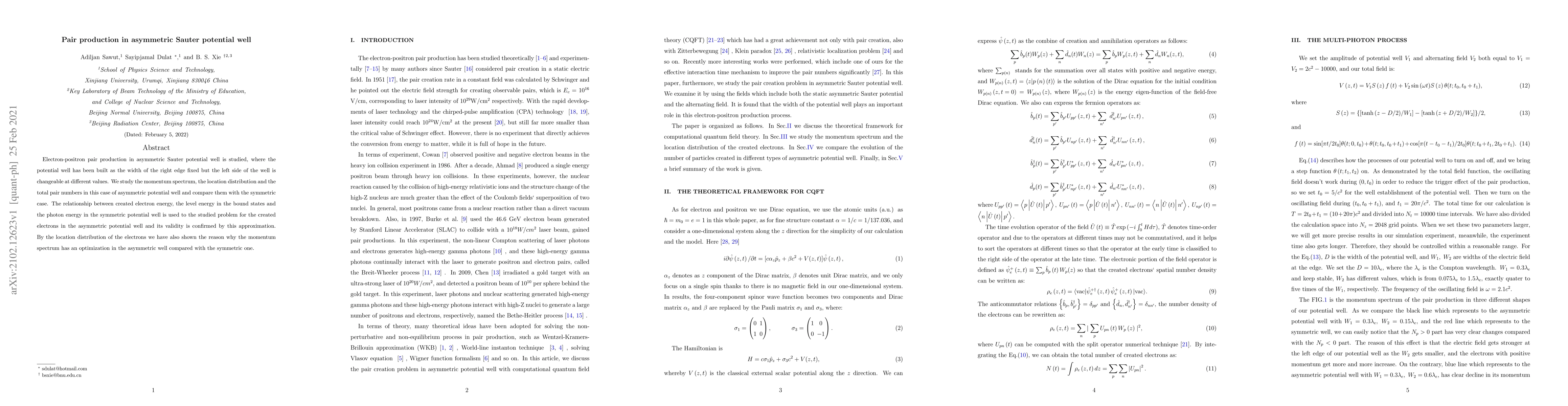 This paper investigates electron-positron pair production in asymmetric Sauter potential wells, contrasting the momentum spectrum, location distribution, and total pair numbers with symmetric cases. The study confirms the validity of using symmetric potential relationships for understanding asymmetric cases and reveals optimization in momentum spectrum due to electron location distribution.