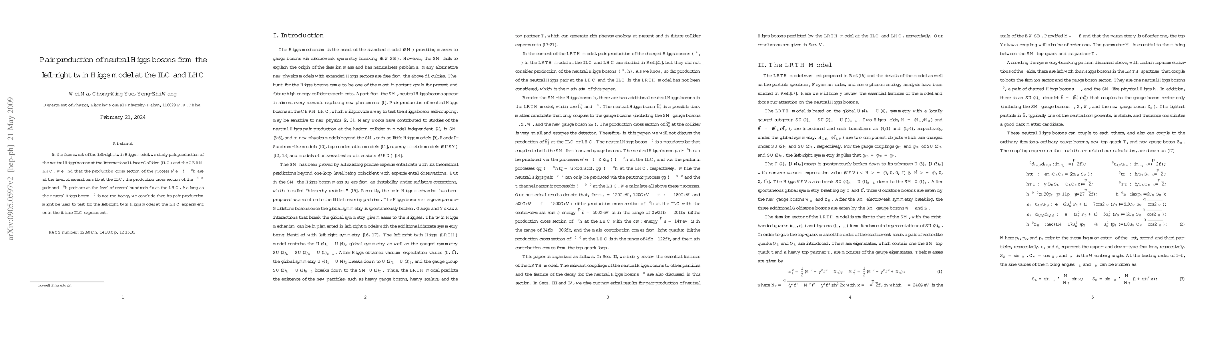 This paper explores the pair production of neutral Higgs bosons within the left-right twin Higgs model at the ILC and LHC. It finds significant cross sections for $\phi^{0}h$ pairs at the ILC and for $\phi^{0}\phi^{0}$ and $\phi^{0}h$ pairs at the LHC, suggesting these processes could validate the left-right twin Higgs model.