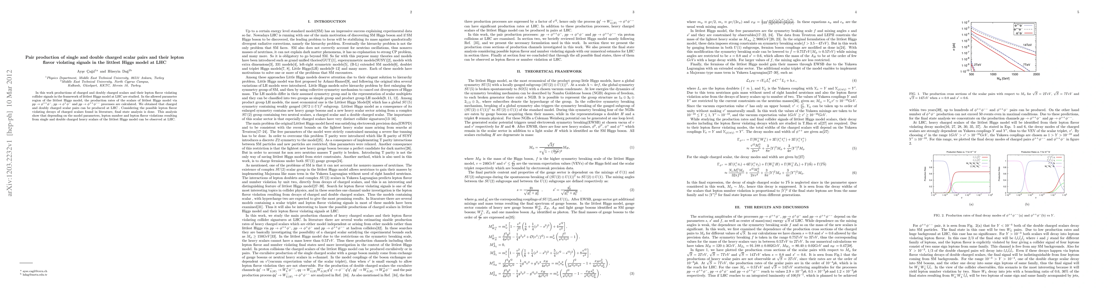 This research investigates the production of single and double charged scalar pairs within the littlest Higgs model at the LHC, focusing on their potential lepton flavor violating decay signals. The study calculates production rates for these scalars and demonstrates that their lepton flavor violating effects could be observable, depending on the model parameters.
