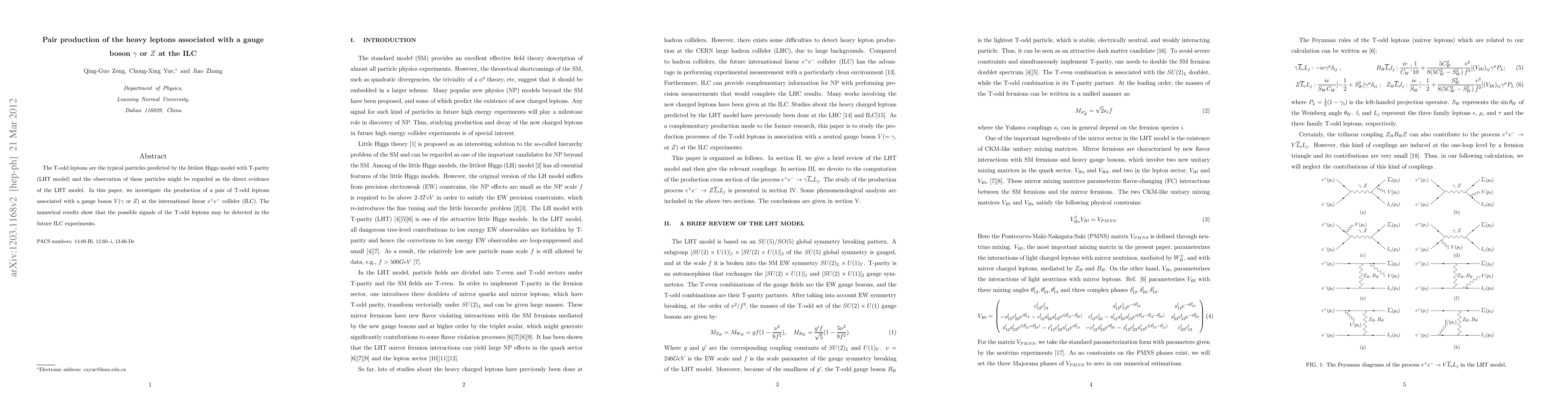 This paper investigates the pair production of T-odd leptons, predicted by the littlest Higgs model with T-parity, in association with gauge bosons at the ILC. The study finds that these particles could be detected in future ILC experiments, providing direct evidence for the LHT model.