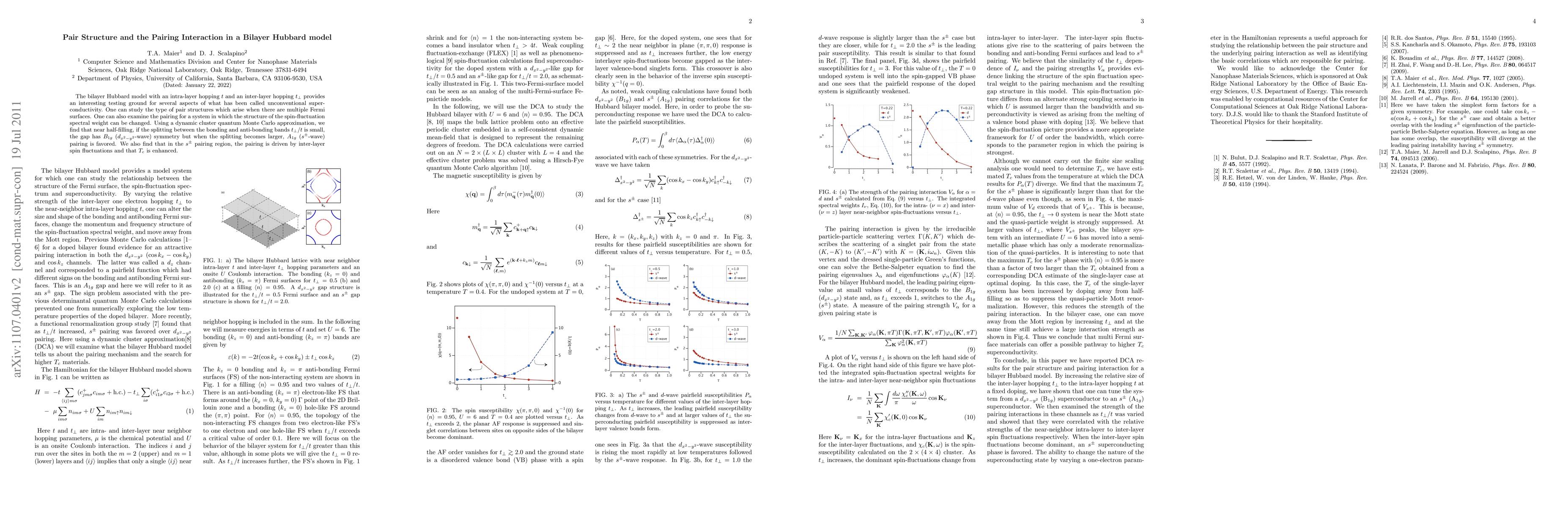 The bilayer Hubbard model with an intra-layer hopping $t$ and an inter-layer hopping $t_\perp$ provides an interesting testing ground for several aspects of what has been called unconventional superconductivity. One can study the type of pair structures which arise when there are multiple Fermi surfaces. One can also examine the pairing for a system in which the structure of the spin-fluctuation spectral weight can be changed. Using a dynamic cluster quantum Monte Carlo approximation, we find that near half-filling, if the splitting between the bonding and anti-bonding bands $t_\perp/t$ is small, the gap has $B_{1g}$ ($d_{x^2-y^2}$-wave) symmetry but when the splitting becomes larger, $A_{1g}$ ($s^\pm$-wave) pairing is favored. We also find that in the $s^\pm$ pairing region, the pairing is driven by inter-layer spin fluctuations and that $T_c$ is enhanced.