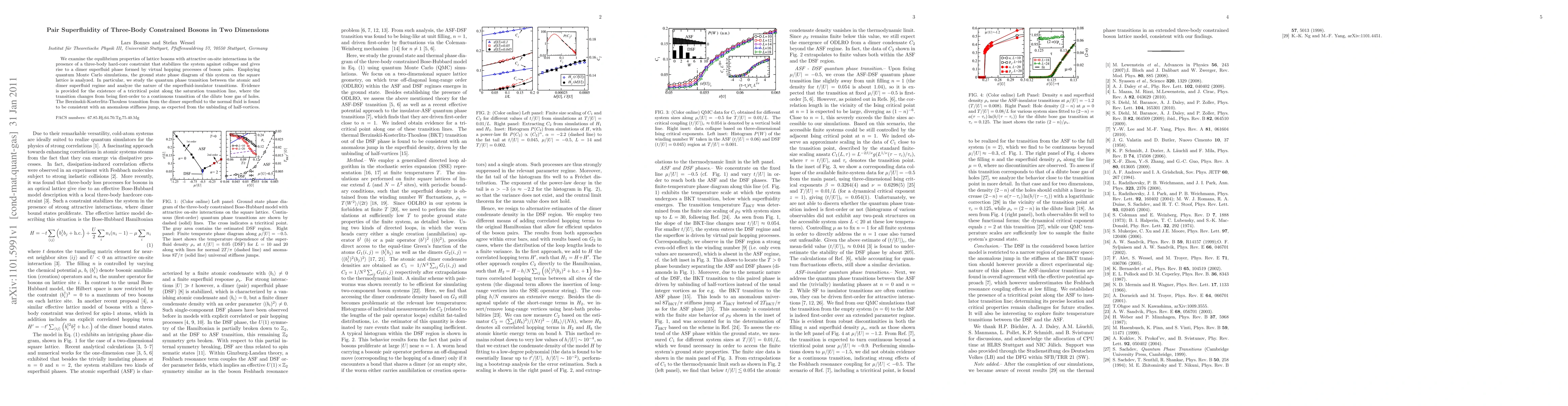We examine the equilibrium properties of lattice bosons with attractive on-site interactions in the presence of a three-body hard-core constraint that stabilizes the system against collapse and gives rise to a dimer superfluid phase formed by virtual hopping processes of boson pairs. Employing quantum Monte Carlo simulations, the ground state phase diagram of this system on the square lattice is analyzed. In particular, we study the quantum phase transition between the atomic and dimer superfluid regime and analyze the nature of the superfluid-insulator transitions. Evidence is provided for the existence of a tricritical point along the saturation transition line, where the transition changes from being first-order to a continuous transition of the dilute bose gas of holes. The Berzinskii-Kosterlitz-Thouless transition from the dimer superfluid to the normal fluid is found to be consistent with an anomalous stiffness jump, as expected from the unbinding of half-vortices.