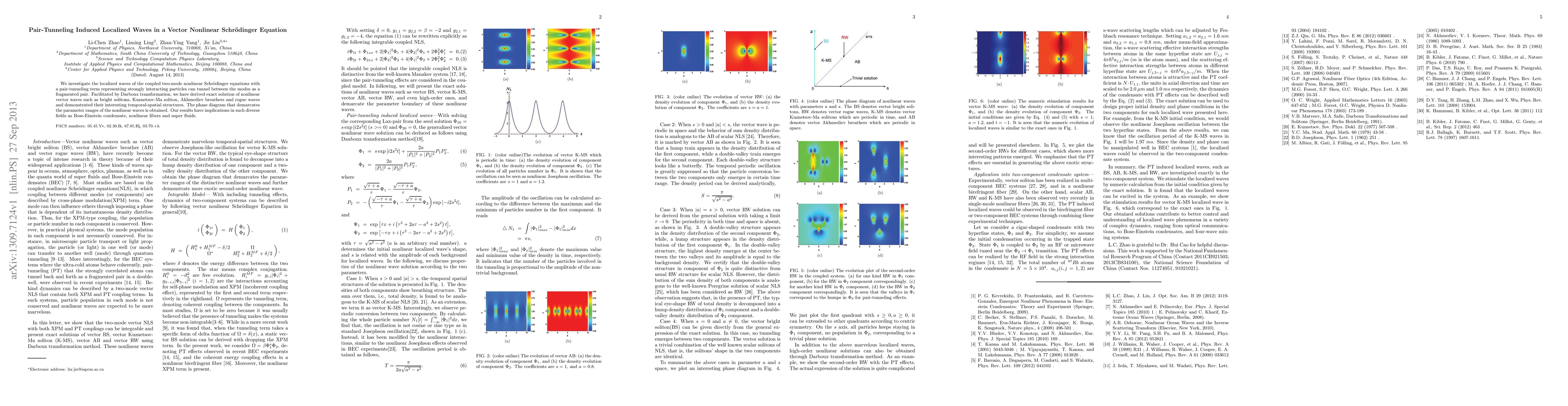 This paper explores the localized waves in a coupled two-mode nonlinear Schrödinger equation with a pair-tunneling term, deriving exact solutions for solitons, breathers, and rogue waves using Darboux transformation. The study has broad implications for Bose-Einstein condensates, nonlinear optical fibers, and superfluids.