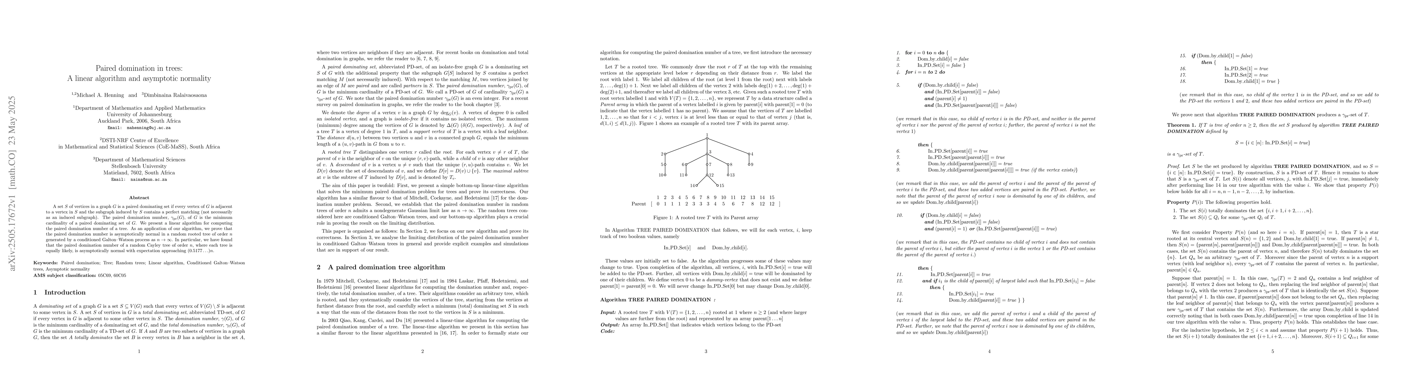 The development of a linear-time algorithm for computing paired domination number in trees and the proof of asymptotic normality for random rooted trees generated via a conditioned Galton-Watson process.