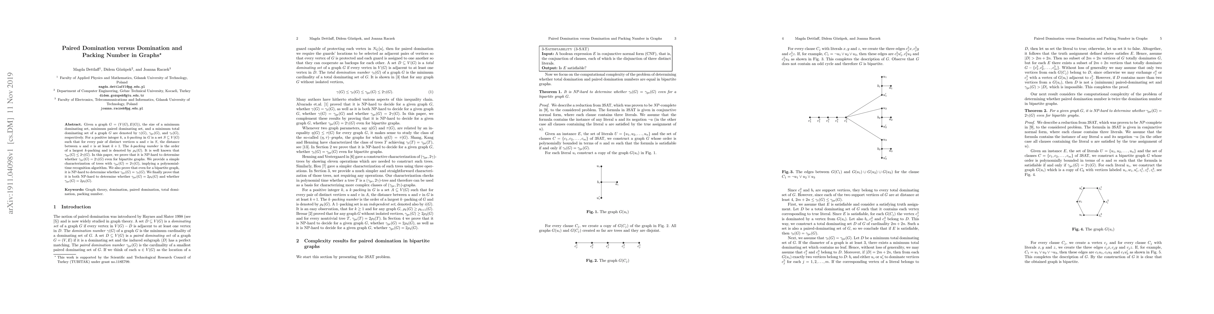 Given a graph $G=(V(G), E(G))$, the size of a minimum dominating set, minimum paired dominating set, and a minimum total dominating set of a graph $G$ are denoted by $\gamma(G)$, $\gamma_{\rm pr}(G)$, and $\gamma_{t}(G)$, respectively. For a positive integer $k$, a $k$-packing in $G$ is a set $S \subseteq V(G)$ such that for every pair of distinct vertices $u$ and $v$ in $S$, the distance between $u$ and $v$ is at least $k+1$. The $k$-packing number is the order of a largest $k$-packing and is denoted by $\rho_{k}(G)$. It is well known that $\gamma_{\rm pr}(G) \le 2\gamma(G)$. In this paper, we prove that it is NP-hard to determine whether $\gamma_{\rm pr}(G) = 2\gamma(G)$ even for bipartite graphs. We provide a simple characterization of trees with $\gamma_{\rm pr}(G) = 2\gamma(G)$, implying a polynomial-time recognition algorithm. We also prove that even for a bipartite graph, it is NP-hard to determine whether $\gamma_{\rm pr}(G)=\gamma_{t}(G)$. We finally prove that it is both NP-hard to determine whether $\gamma_{\rm pr}(G)=2\rho_{4}(G)$ and whether $\gamma_{\rm pr}(G)=2\rho_{3}(G)$.