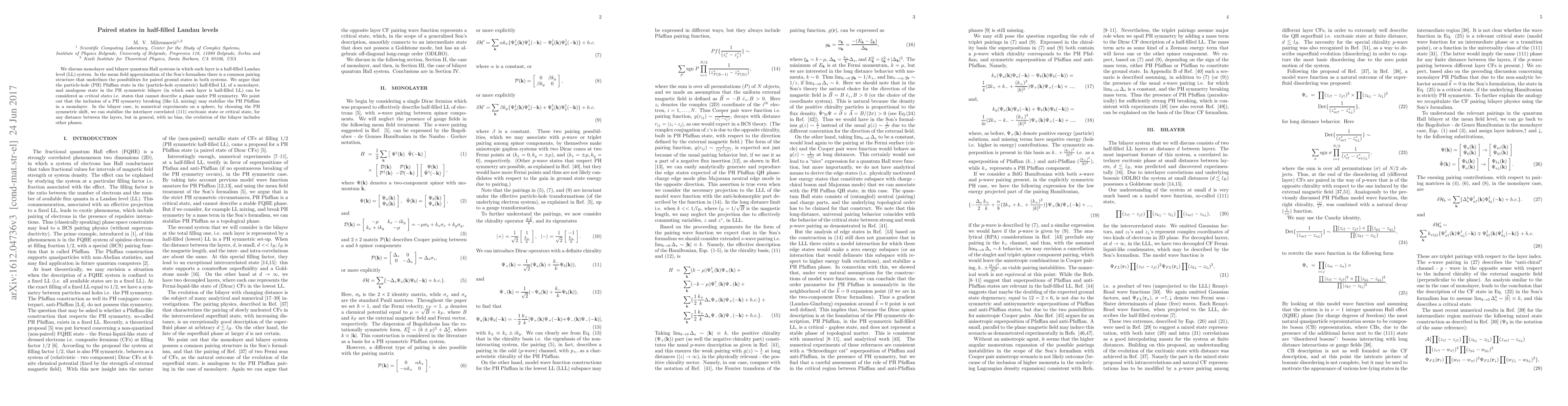 We discuss monolayer and bilayer quantum Hall systems in which each layer is a half-filled Landau level (LL) system. In the mean field approximation of the Son's formalism there is a common pairing structure that underlines the possibilities for paired ground states in both systems. We argue that the particle-hole (PH) Pfaffian state in the (particle-hole symmetric) half-filled LL of a monolayer, and analogous state in the PH symmetric bilayer (in which each layer is half-filled LL) can be considered as {\em critical states} i.e. states that cannot describe a phase under PH symmetry. We point out that the inclusion of a PH symmetry breaking (like LL mixing) may stabilize the PH Pfaffian in a monolayer. In the bilayer case, in numerical experiments on a sphere, by choosing the PH symmetric shift, we can stabilize the interlayer correlated (111) excitonic state or critical state, for any distance between the layers, but in general, with no bias, the evolution of the bilayer includes other phases.