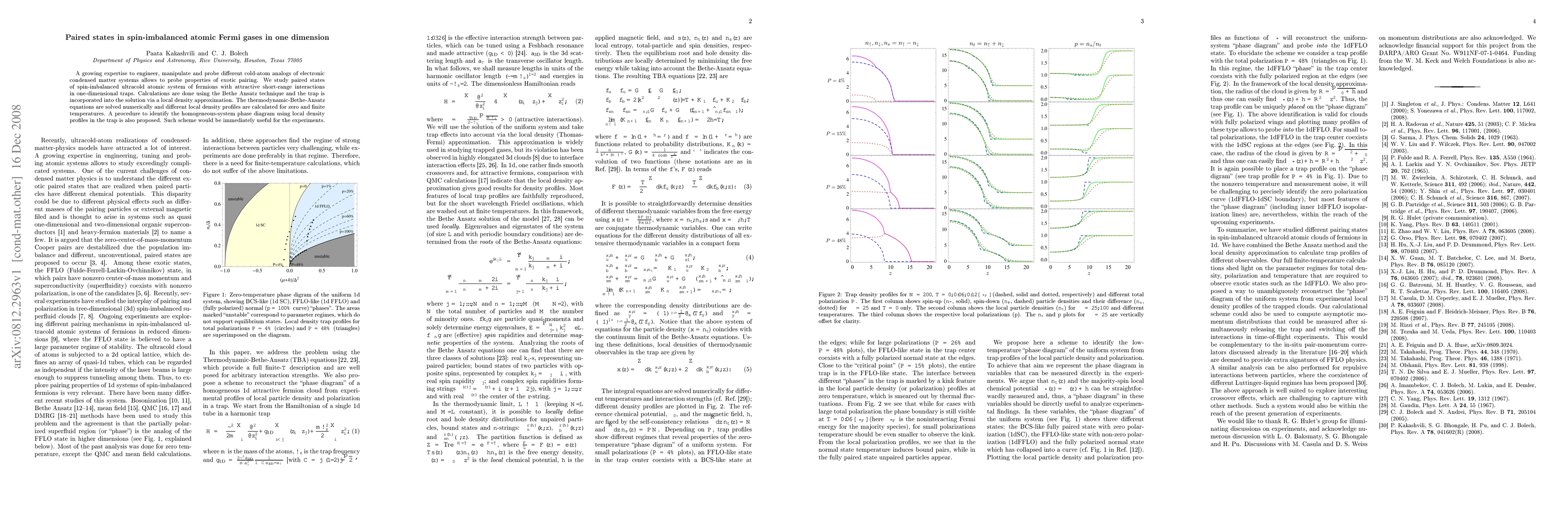 Researchers studied paired states in ultracold atomic systems with spin imbalance, using the Bethe Ansatz technique to calculate thermodynamic properties at zero and finite temperatures.