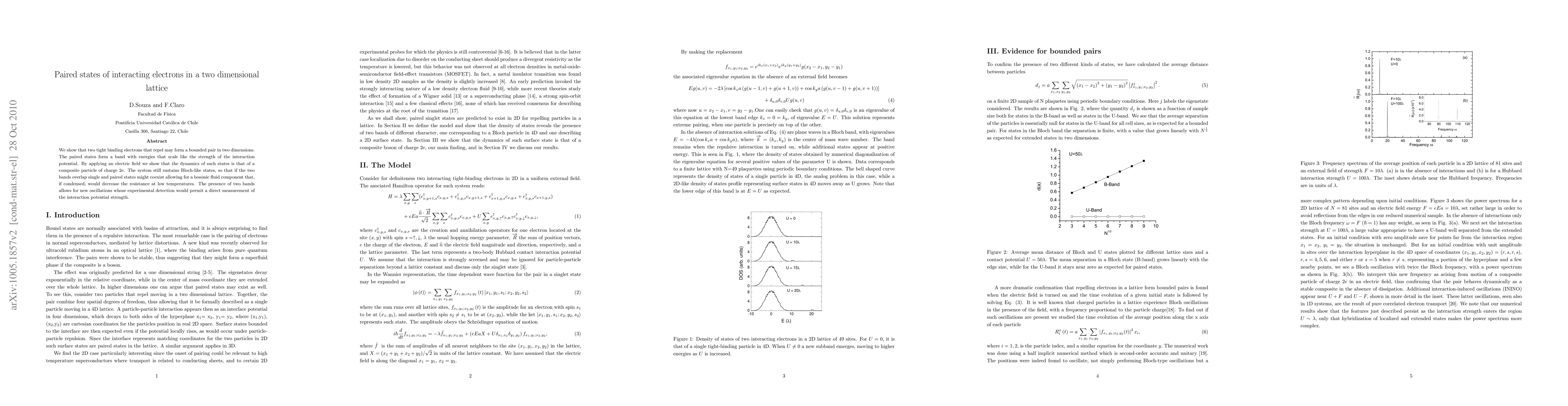 We show that two tight binding electrons that repel may form a bounded pair in two dimensions. The paired states form a band with energies that scale like the strength of the interaction potential. By applying an electric field we show that the dynamics of such states is that of a composite particle of charge 2e. The system still sustains Bloch-like states, so that if the two bands overlap single and paired states might coexist allowing for a bosonic fluid component that, if condensed, would decrease the resistance at low temperatures. The presence of two bands allows for new oscillations whose experimental detection would permit a direct measurement of the interaction potential strength.