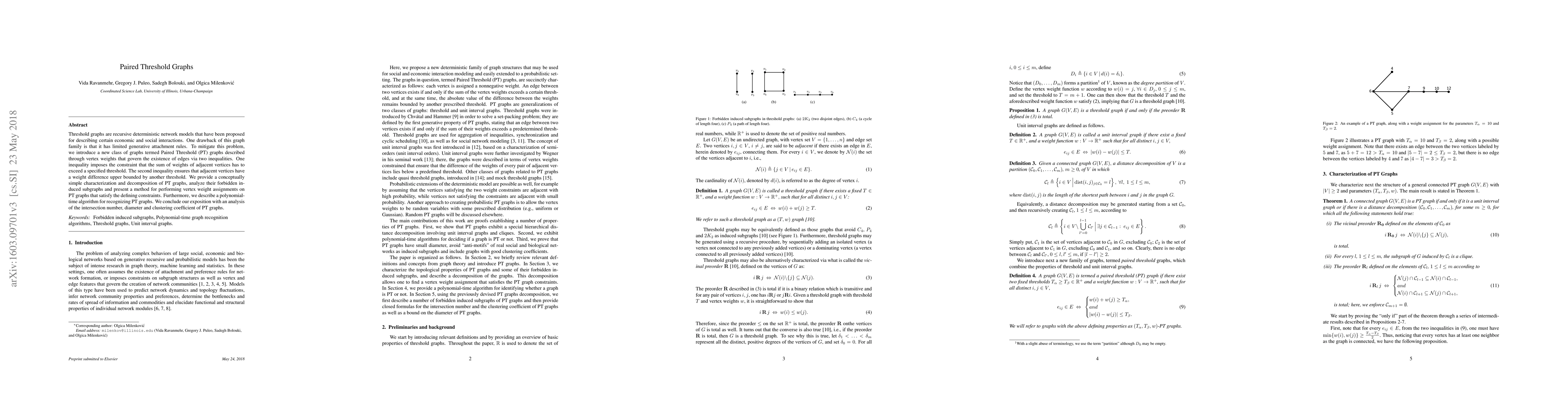 Threshold graphs are recursive deterministic network models that have been proposed for describing certain economic and social interactions. One drawback of this graph family is that it has limited generative attachment rules. To mitigate this problem, we introduce a new class of graphs termed Paired Threshold (PT) graphs described through vertex weights that govern the existence of edges via two inequalities. One inequality imposes the constraint that the sum of weights of adjacent vertices has to exceed a specified threshold. The second inequality ensures that adjacent vertices have a weight difference upper bounded by another threshold. We provide a conceptually simple characterization and decomposition of PT graphs, analyze their forbidden induced subgraphs and present a method for performing vertex weight assignments on PT graphs that satisfy the defining constraints. Furthermore, we describe a polynomial-time algorithm for recognizing PT graphs. We conclude our exposition with an analysis of the intersection number, diameter and clustering coefficient of PT graphs.