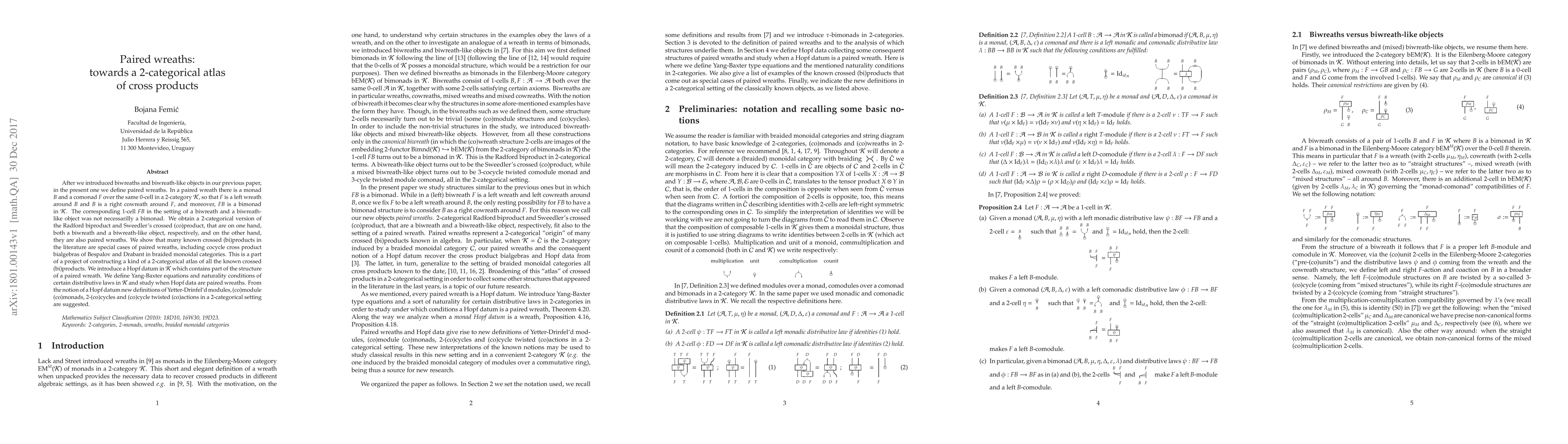 Researchers introduce paired wreaths, a 2-categorical concept that encompasses both biwreaths and biwreath-like objects, and show they relate to known crossed products in the literature.
