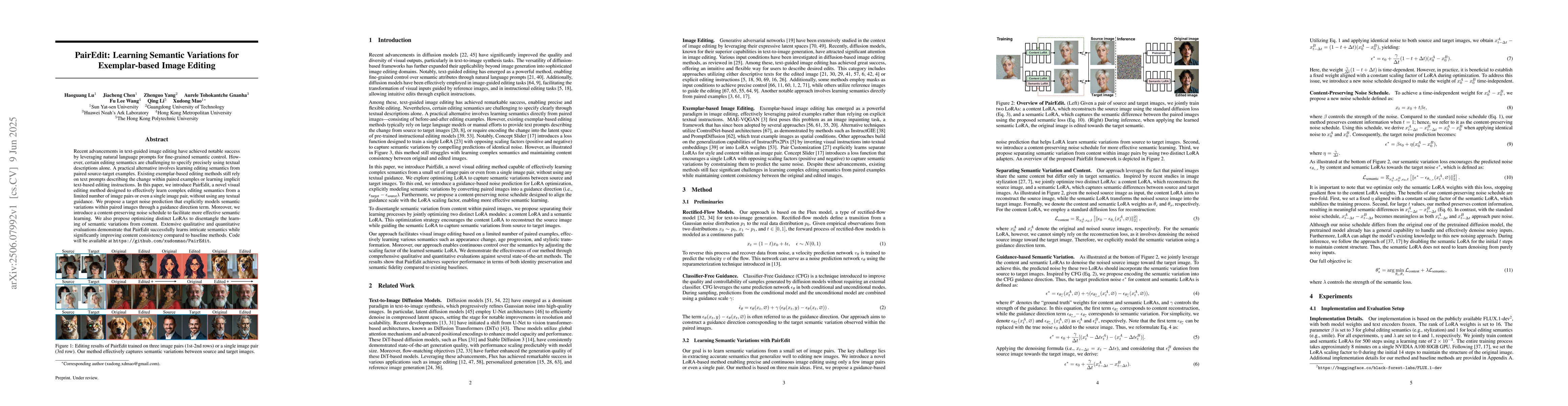 PairEdit learns complex image editing semantics from paired examples without text prompts, achieving better content consistency than baseline methods.