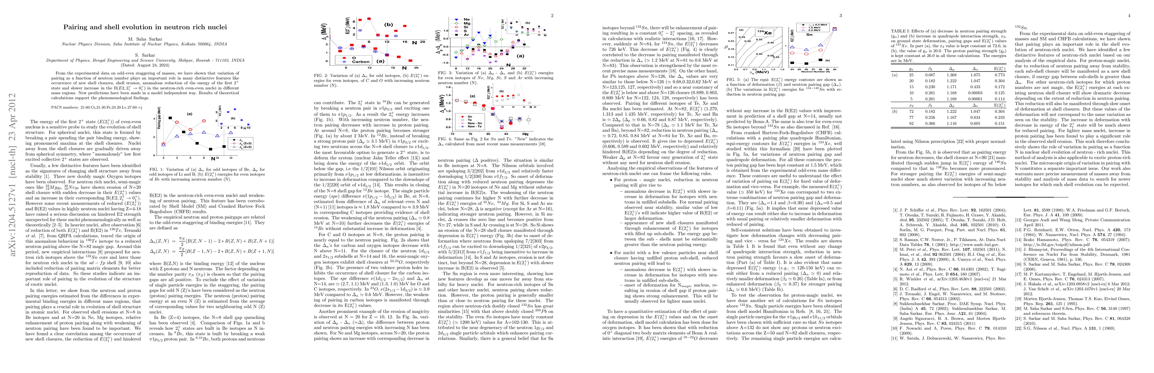 From the experimental data on odd-even staggering of masses, we have shown that variation of pairing as a function of neutron number plays an important role in many distinctive features like occurrence of new shell closures, shell erosion, anomalous reduction of the energy of the first 2+ state and slower increase in the B(E2, 2_{+}^{1} \rightarrow 0_{+}^{1}) in the neutron-rich even-even nuclei in different mass regions. New predictions have been made in a model independent way. Results of theoretical calculations support the phenomenological findings.