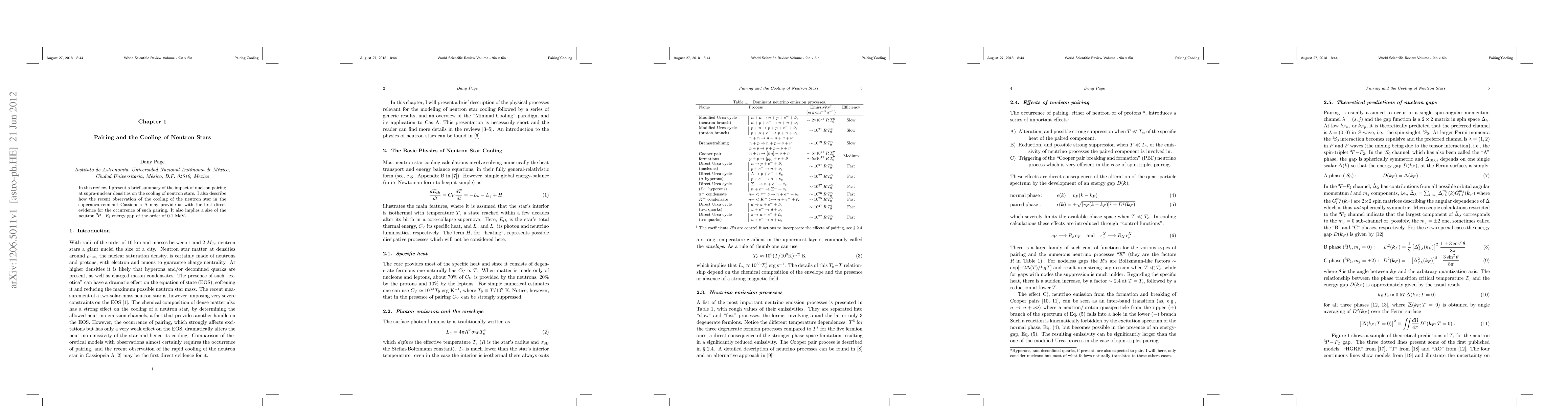 The paper presents a detailed review of theoretical models and phenomenological approaches for understanding the role of nucleon pairing in neutron star cooling, as well as discussing the implications of recent observational data from Cassiopeia A.