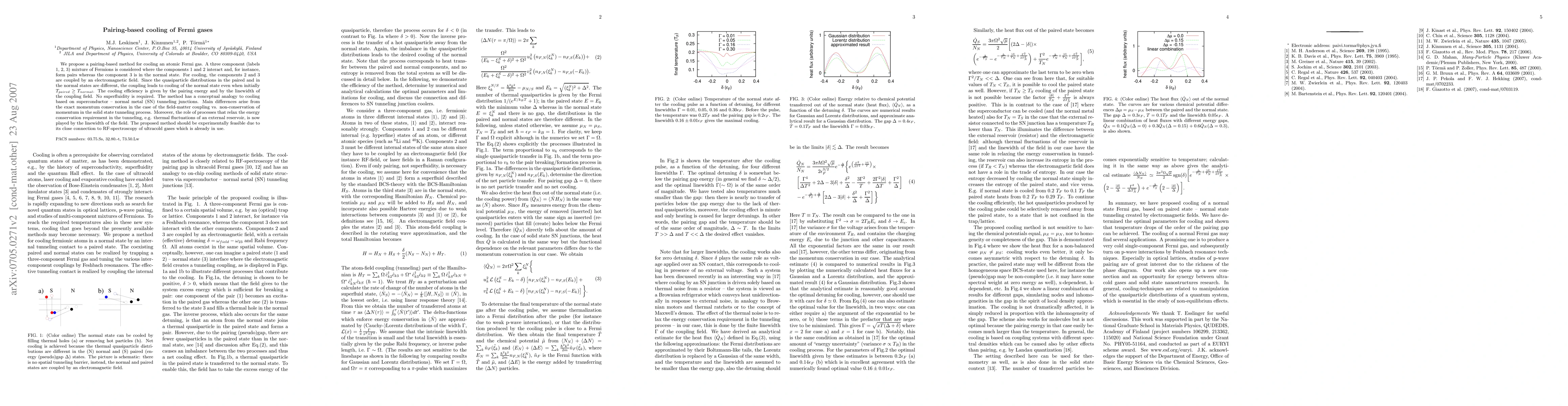 Researchers propose a method to cool atomic Fermi gases using pairing-based cooling, where a third component interacts with paired and normal states to achieve cooling, without requiring superfluidity.