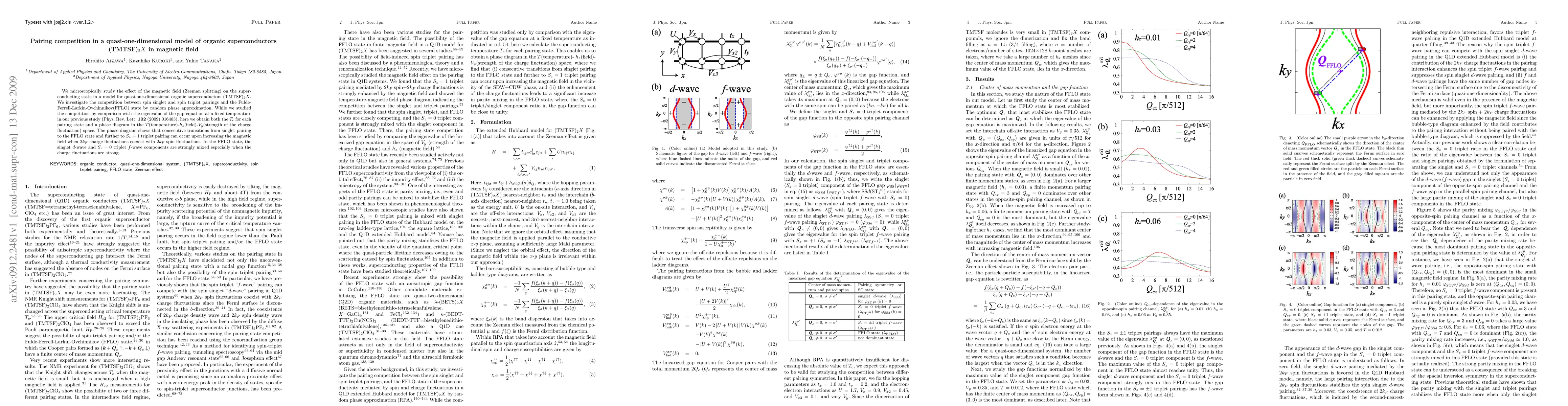 This paper investigates the impact of magnetic fields on the superconducting state in quasi-one-dimensional organic superconductors (TMTSF)$_{2}X$, focusing on the competition between spin singlet and triplet pairings and the FFLO state. The study reveals a phase diagram showing transitions from singlet to FFLO and then to triplet pairing with increasing magnetic field, especially when charge fluctuations are significant.