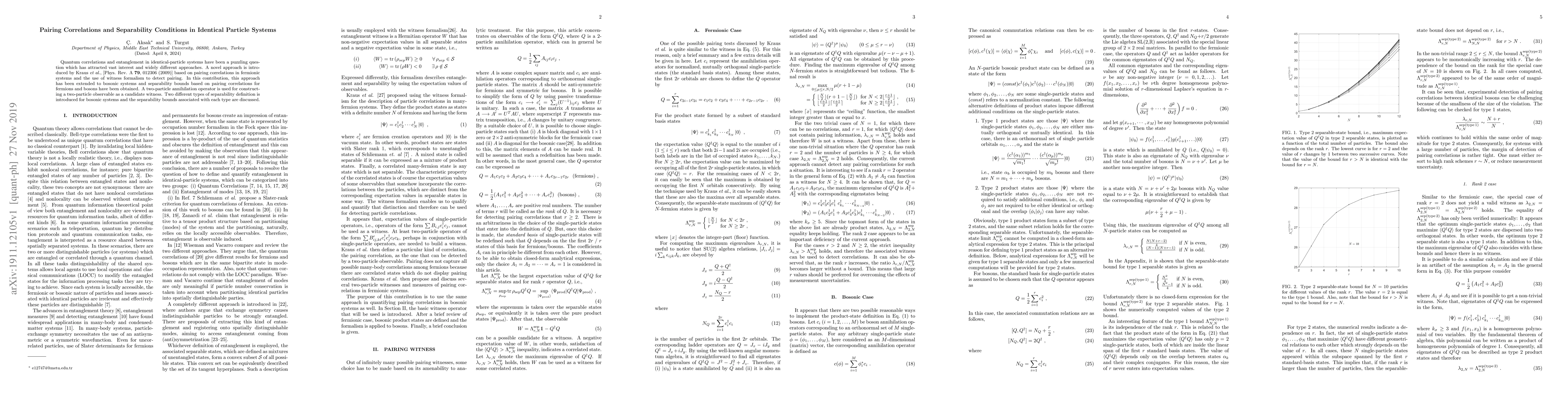 Quantum correlations and entanglement in identical-particle systems have been a puzzling question which has attracted vast interest and widely different approaches. A novel approach is introduced by Kraus \emph{et al.}, [Phys. Rev. A \textbf{79}, 012306 (2009)] based on pairing correlations in fermionic systems and the use of witness formalism to detect pairing. In this contribution, this approach has been extended to bosonic systems and separability bounds based on pairing correlations for fermions and bosons have been obtained. A two-particle annihilation operator is used for constructing a two-particle observable as a candidate witness. Two different types of separability definition is introduced for bosonic systems and the separability bounds associated with each type are discussed.