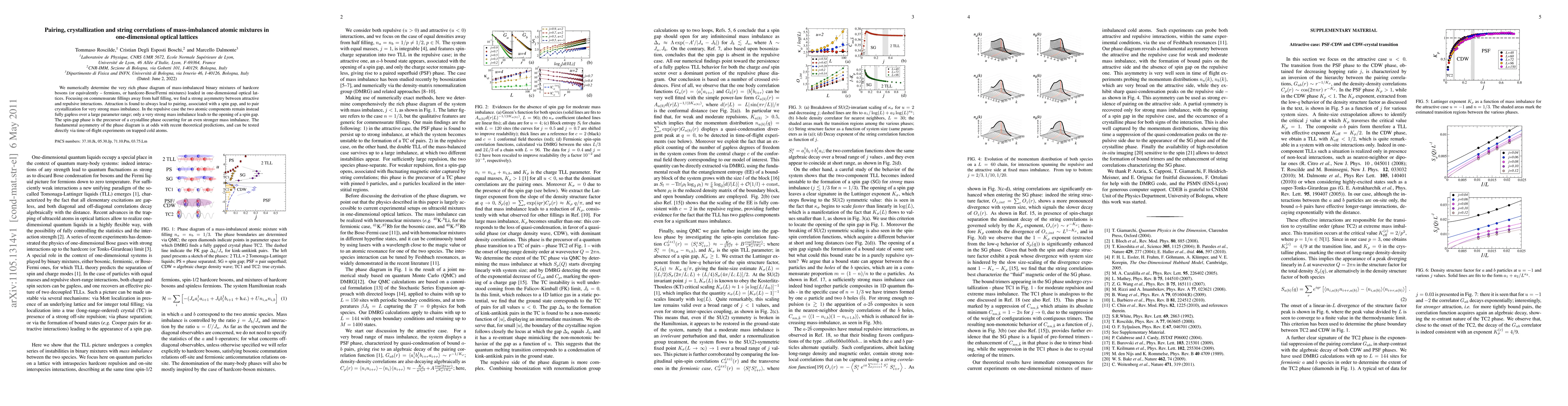 This paper numerically explores the phase diagram of mass-imbalanced atomic mixtures in one-dimensional optical lattices, revealing strong pairing and crystallization under attractive interactions, while repulsive interactions maintain a gapless state except under extreme mass imbalance. The findings challenge recent theoretical predictions and suggest experimental verification via cold atom experiments.