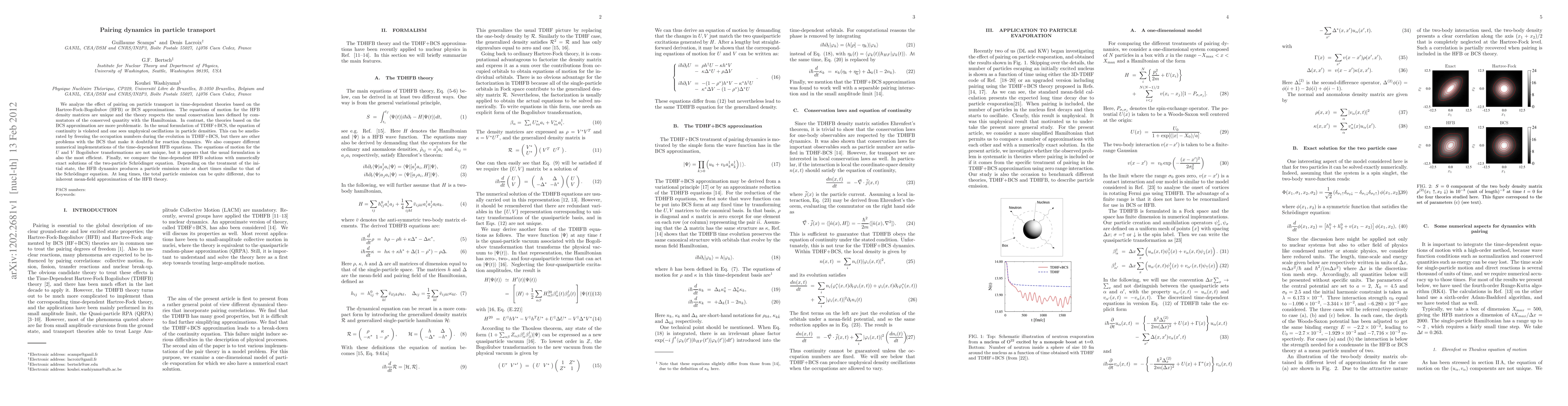 We analyze the effect of pairing on particle transport in time-dependent theories based on the Hartree-Fock-Bogoliubov (HFB) or BCS approximations. The equations of motion for the HFB density matrices are unique and the theory respects the usual conservation laws defined by commutators of the conserved quantity with the Hamiltonian. In contrast, the theories based on the BCS approximation are more problematic. In the usual formulation of TDHF+BCS, the equation of continuity is violated and one sees unphysical oscillations in particle densities. This can be ameliorated by freezing the occupation numbers during the evolution in TDHF+BCS, but there are other problems with the BCS that make it doubtful for reaction dynamics. We also compare different numerical implementations of the time-dependent HFB equations. The equations of motion for the $U$ and $V$ Bogoliubov transformations are not unique, but it appears that the usual formulation is also the most efficient. Finally, we compare the time-dependent HFB solutions with numerically exact solutions of the two-particle Schrodinger equation. Depending on the treatment of the initial state, the HFB dynamics produces a particle emission rate at short times similar to that of the Schrodinger equation. At long times, the total particle emission can be quite different, due to inherent mean-field approximation of the HFB theory.