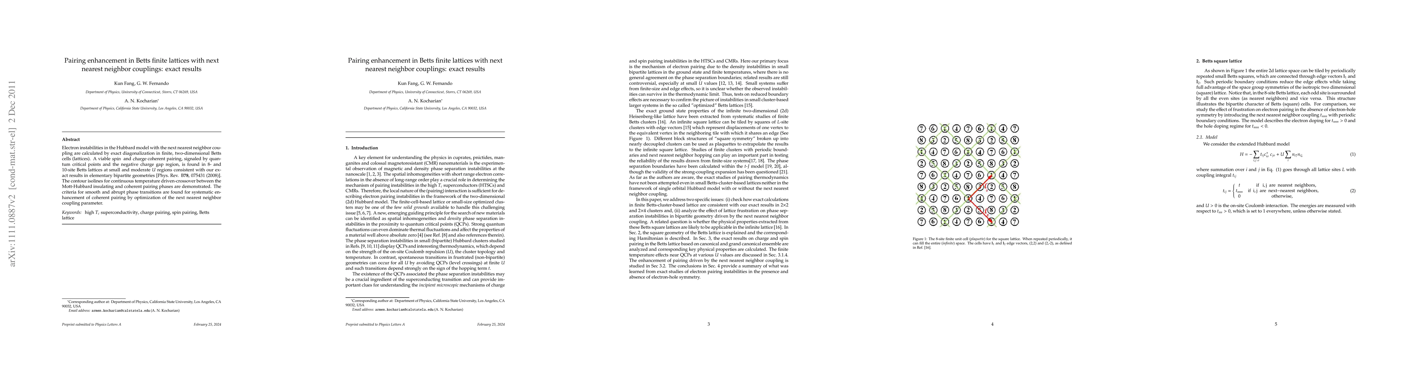 This paper reports exact diagonalization results in Betts lattices showing electron pairing enhancements via next nearest neighbor couplings in the Hubbard model. It identifies coherent pairing phases and demonstrates temperature-driven crossovers between insulating and pairing states, providing criteria for optimizing coupling parameters for phase transitions.