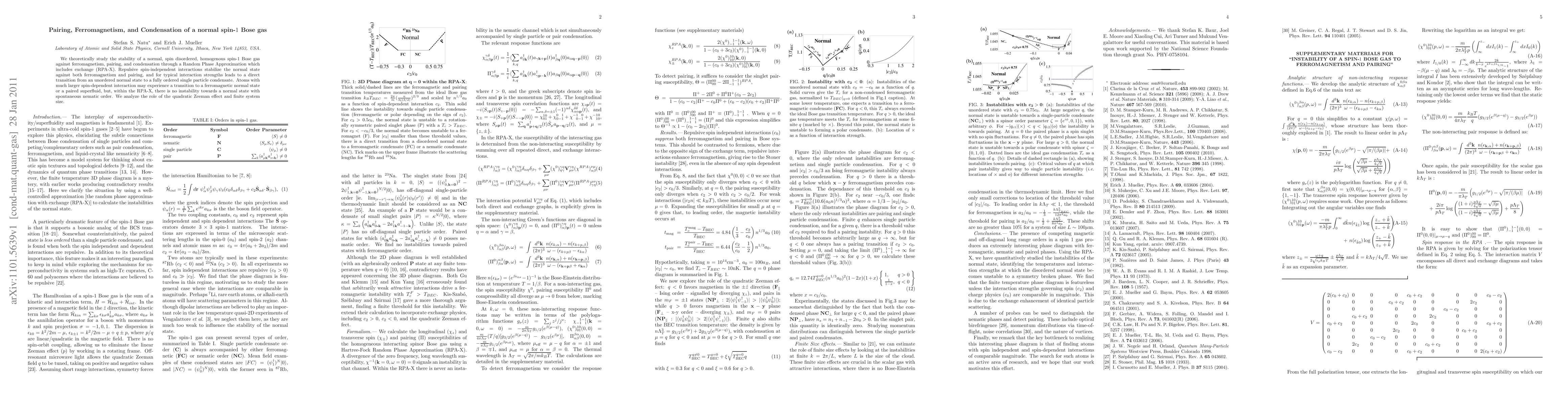 This paper investigates the stability of a spin-1 Bose gas against ferromagnetism, pairing, and condensation using Random Phase Approximation with exchange. Repulsive spin-independent interactions prevent ferromagnetism and pairing, leading to a transition to a single-particle condensate, while spin-dependent interactions may result in ferromagnetism or superfluid pairing. The study also examines the effects of the quadratic Zeeman effect and finite system size.