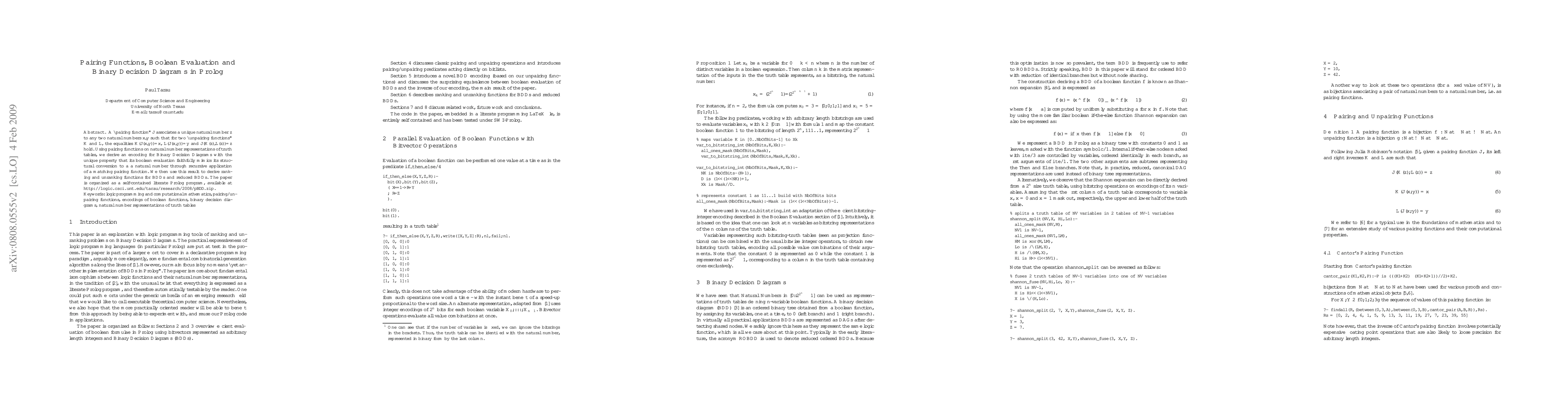 Researchers developed a way to encode Binary Decision Diagrams using pairing functions, allowing for faithful conversion between boolean evaluation and structural representation as natural numbers. This enables ranking and unranking functions for BDDs and reduced BDDs.