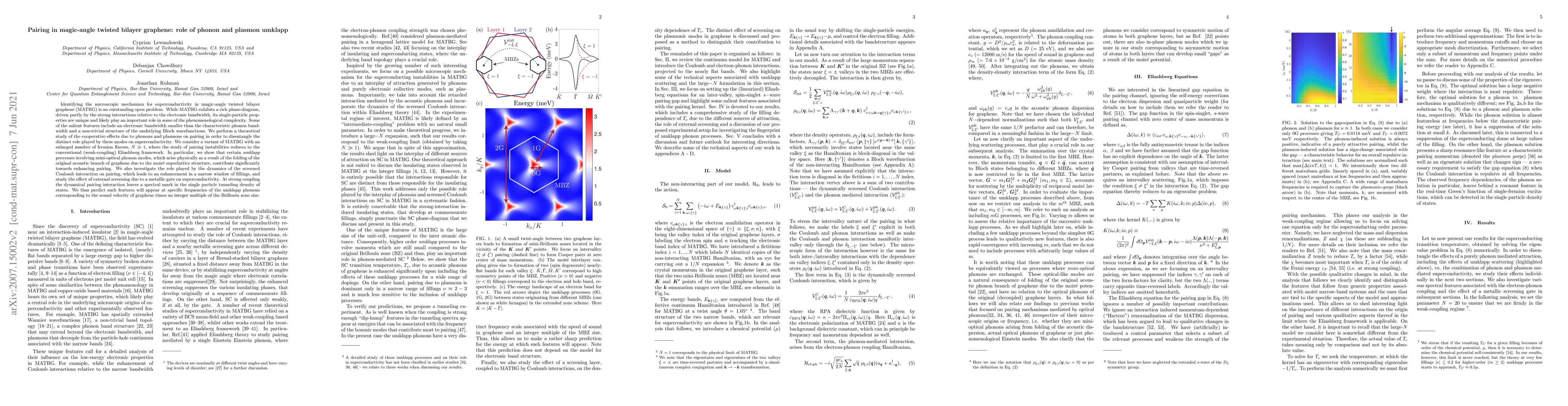 This paper investigates the role of phonons and plasmons in pairing mechanisms for superconductivity in magic-angle twisted bilayer graphene (MATBG). It demonstrates that certain umklapp phonon processes significantly enhance pairing, while also considering the impact of screened Coulomb interactions and external metallic gate screening on superconductivity.