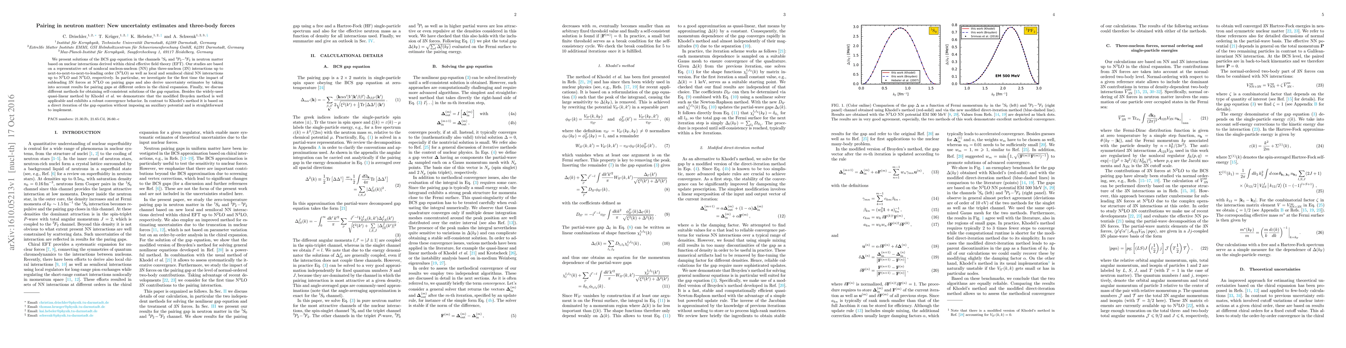 We present solutions of the BCS gap equation in the channels ${}^1S_0$ and ${}^3P_2-{}^3F_2$ in neutron matter based on nuclear interactions derived within chiral effective field theory (EFT). Our studies are based on a representative set of nonlocal nucleon-nucleon (NN) plus three-nucleon (3N) interactions up to next-to-next-to-next-to-leading order (N$^3$LO) as well as local and semilocal chiral NN interactions up to N$^2$LO and N$^4$LO, respectively. In particular, we investigate for the first time the impact of subleading 3N forces at N$^3$LO on pairing gaps and also derive uncertainty estimates by taking into account results for pairing gaps at different orders in the chiral expansion. Finally, we discuss different methods for obtaining self-consistent solutions of the gap equation. Besides the widely-used quasi-linear method by Khodel et al. we demonstrate that the modified Broyden method is well applicable and exhibits a robust convergence behavior. In contrast to Khodel's method it is based on a direct iteration of the gap equation without imposing an auxiliary potential and is straightforward to implement.