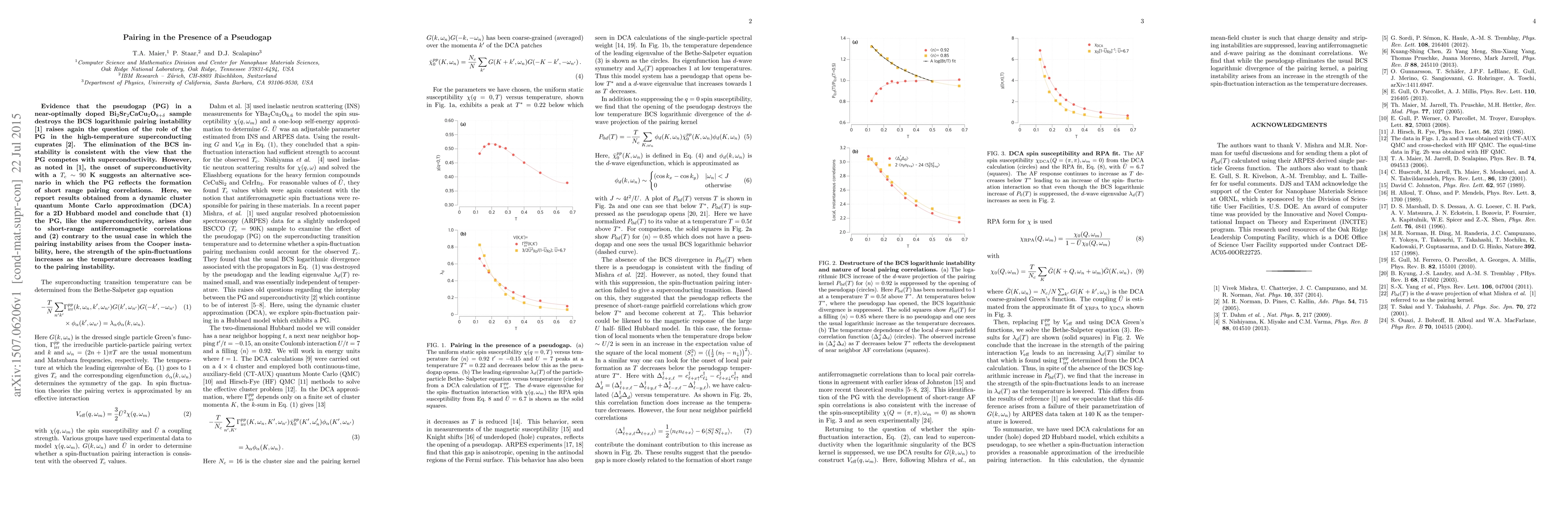Evidence that the pseudogap (PG) in a near-optimally doped Bi$_2$Sr$_2$CaCu$_2$O$_{8+\delta}$ sample destroys the BCS logarithmic pairing instability [1] raises again the question of the role of the PG in the high-temperature superconducting cuprates [2]. The elimination of the BCS instability is consistent with the view that the PG competes with superconductivity. However, as noted in [1], the onset of superconductivity with a $T_c \sim 90$ K suggests an alternative scenario in which the PG reflects the formation of short range pairing correlations. Here, we report results obtained from a dynamic cluster quantum Monte Carlo approximation (DCA) for a 2D Hubbard model and conclude that (1) the PG, like the superconductivity, arises due to short-range antiferromagnetic correlations and (2) contrary to the usual case in which the pairing instability arises from the Cooper instability, here, the strength of the spin-fluctuations increases as the temperature decreases leading to the pairing instability.
