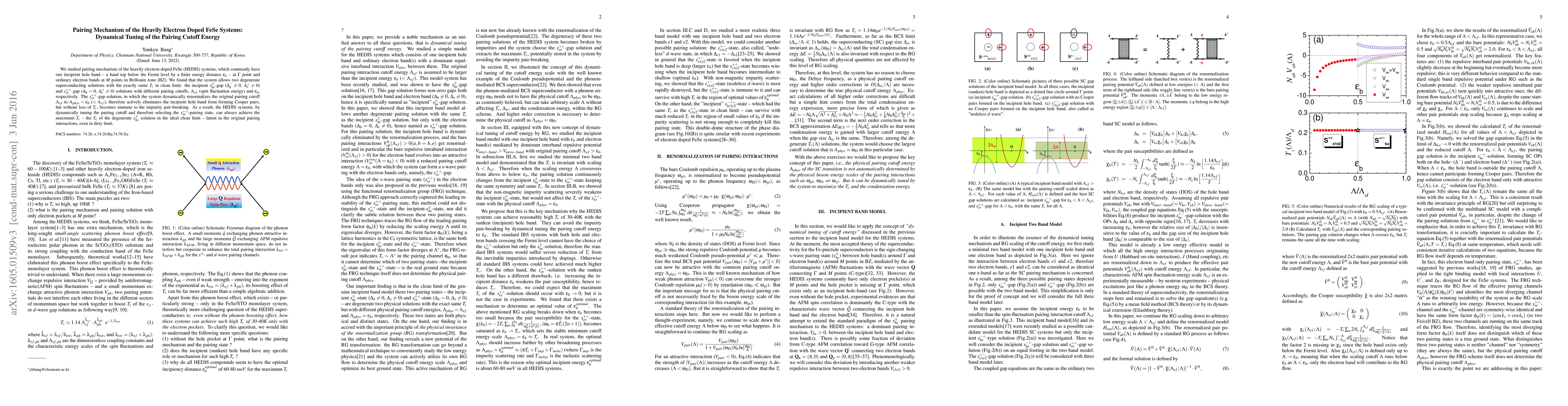 This study investigates the pairing mechanism in heavily electron doped FeSe systems, revealing two degenerate superconducting solutions with identical critical temperatures. The system dynamically tunes the pairing cutoff energy, favoring an $s_{ee}^{++}$-gap state that eliminates the incipient hole band without compromising $T_c$, thus achieving the maximum latent critical temperature even in the presence of impurities.