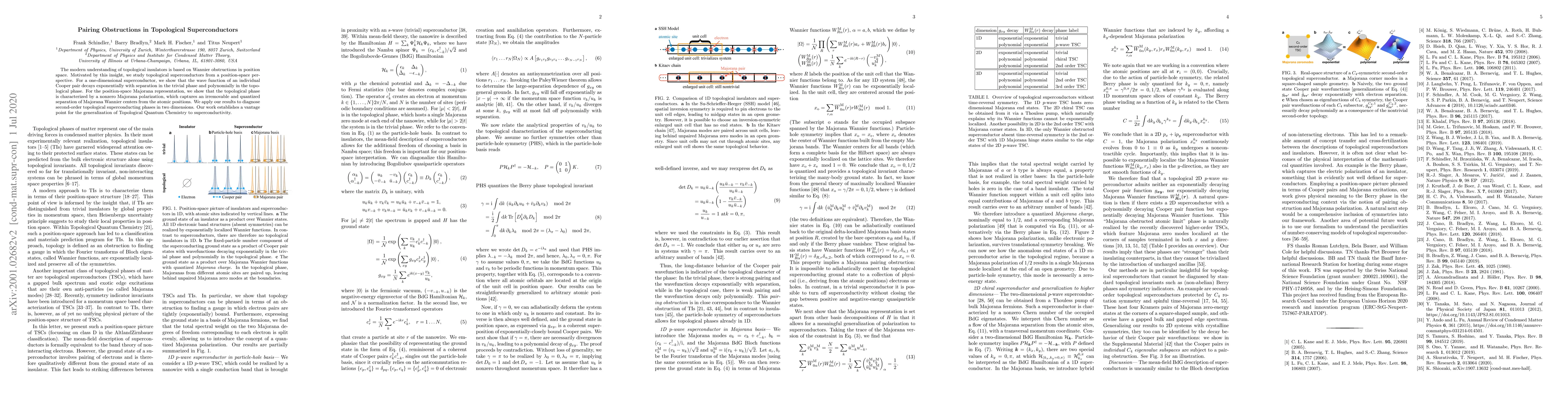 The modern understanding of topological insulators is based on Wannier obstructions in position space. Motivated by this insight, we study topological superconductors from a position-space perspective. For a one-dimensional superconductor, we show that the wave function of an individual Cooper pair decays exponentially with separation in the trivial phase and polynomially in the topological phase. For the position-space Majorana representation, we show that the topological phase is characterized by a nonzero Majorana polarization, which captures an irremovable and quantized separation of Majorana Wannier centers from the atomic positions. We apply our results to diagnose second-order topological superconducting phases in two dimensions. Our work establishes a vantage point for the generalization of Topological Quantum Chemistry to superconductivity.