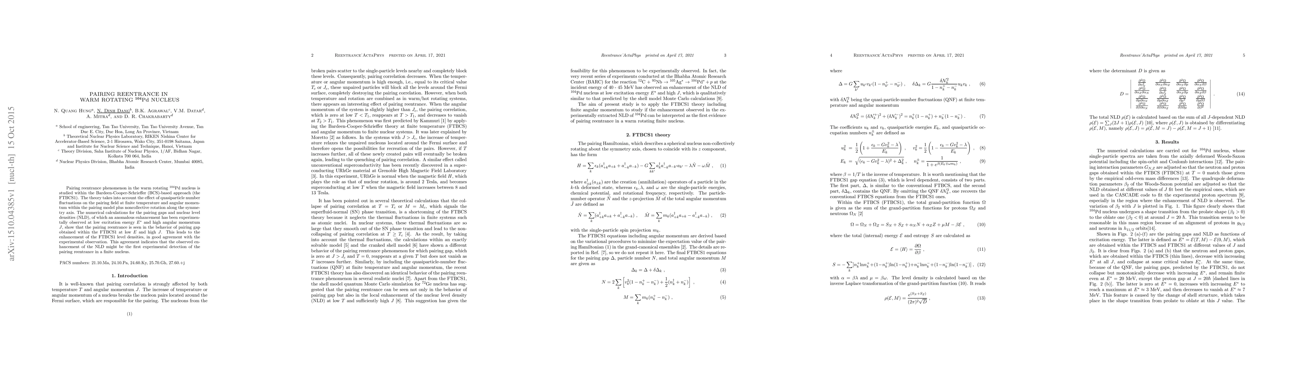 This paper investigates pairing reentrance in the warm rotating $^{104}$Pd nucleus using the FTBCS1 theory, which considers quasiparticle number fluctuations. The study finds that the pairing reentrance phenomenon is responsible for the experimentally observed anomalous enhancement in nuclear level densities at low excitation energy and high angular momentum.
