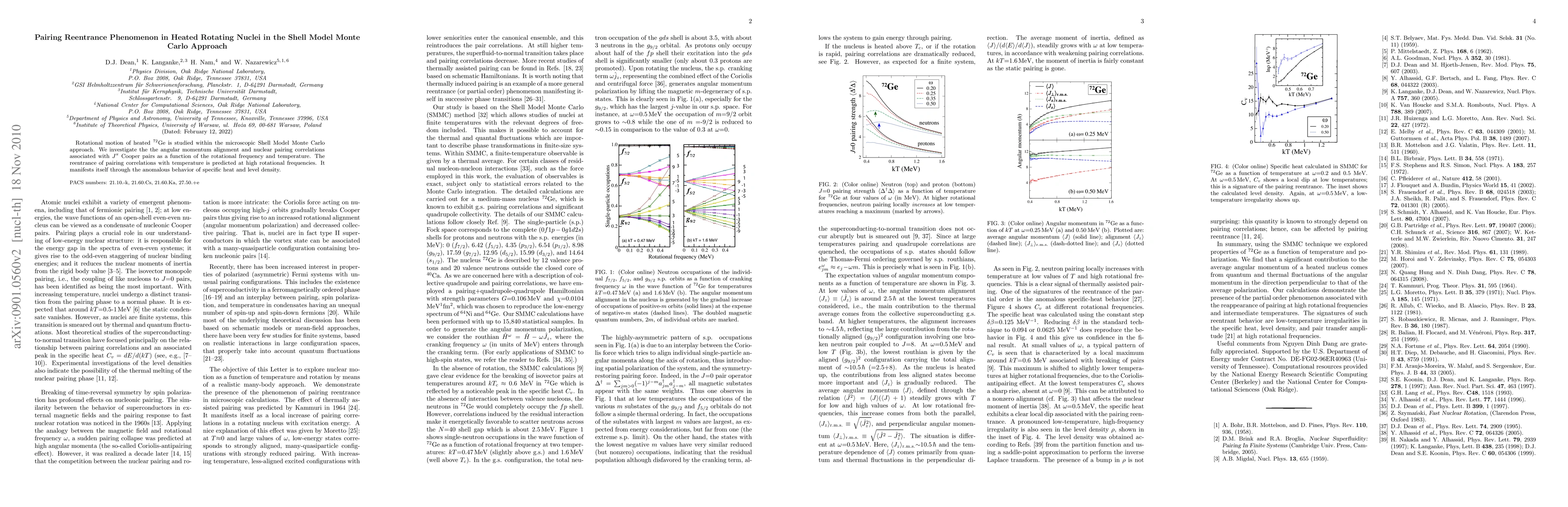 This study uses the Shell Model Monte Carlo approach to examine the rotational motion and nuclear pairing correlations in heated 72-Ge nuclei. The research predicts the reentrance of pairing correlations at high rotational frequencies, which is reflected in the unusual behavior of specific heat and level density.