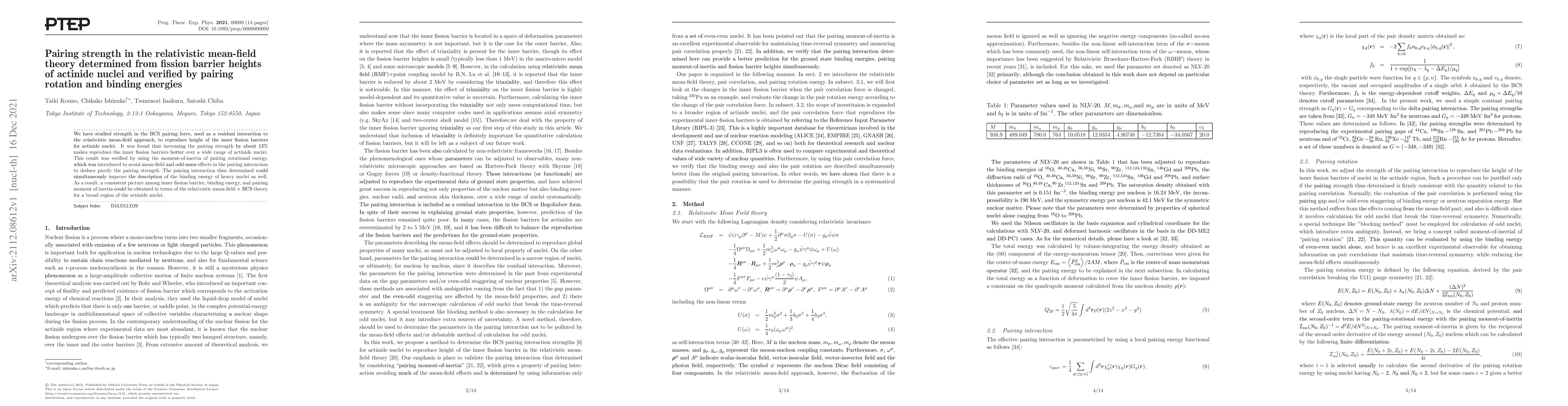 This study enhances the relativistic mean-field theory by increasing the BCS pairing strength by 13% to better reproduce actinide nuclei's inner fission barriers. The improved pairing strength was verified through pairing rotational energy and binding energies, leading to a consistent theoretical framework for actinide nuclei.