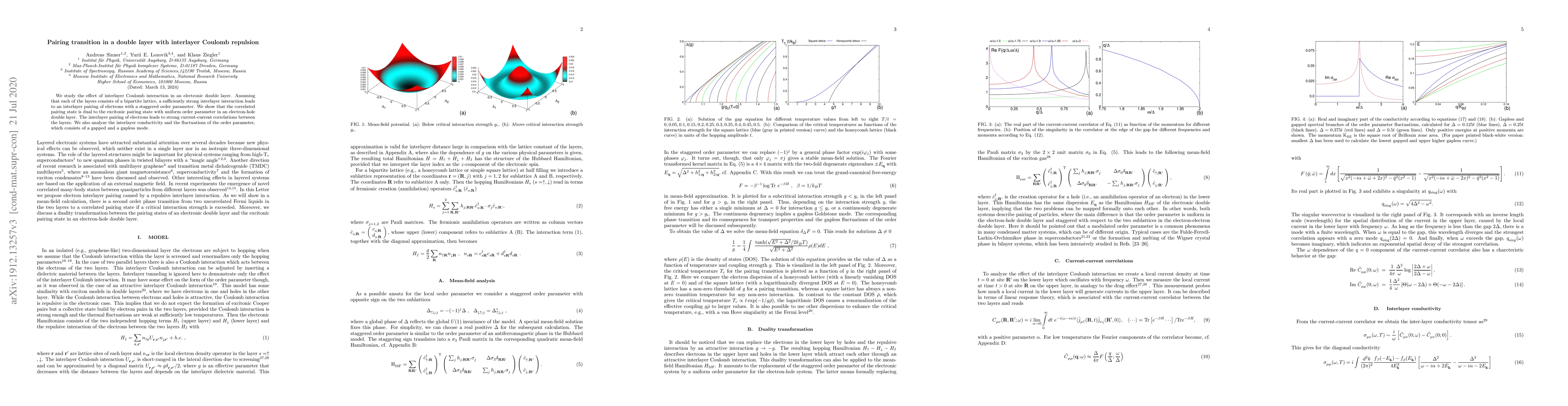 This paper investigates the impact of interlayer Coulomb repulsion in an electronic double layer, demonstrating that strong interactions induce electron pairing with a staggered order parameter. It reveals a duality between the interlayer pairing state and an excitonic pairing state in an electron-hole double layer, highlighting significant current-current correlations and analyzing both gapped and gapless modes in the order parameter fluctuations.