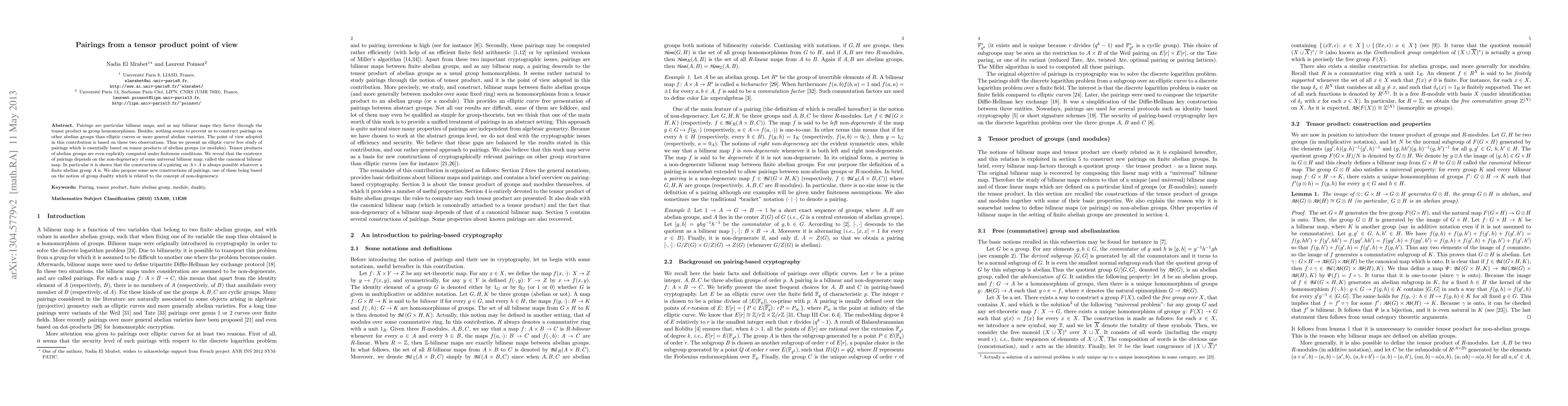 This paper explores pairings from a tensor product perspective, focusing on their construction on any abelian group, not just elliptic curves. It demonstrates that pairings can always be constructed on finite abelian groups through the non-degeneracy of a canonical bilinear map, and proposes new pairing constructions based on group duality.