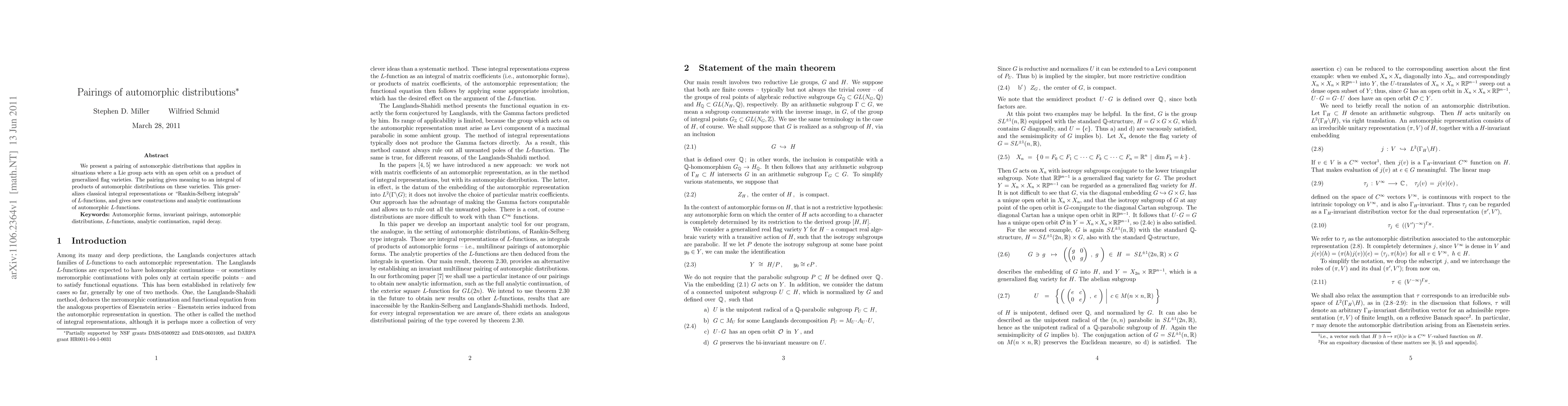 This research introduces a pairing method for automorphic distributions applicable in cases where a Lie group operates with an open orbit on a product of generalized flag varieties. It extends classical L-function integral representations, providing new constructions and analytic continuations for automorphic L-functions.
