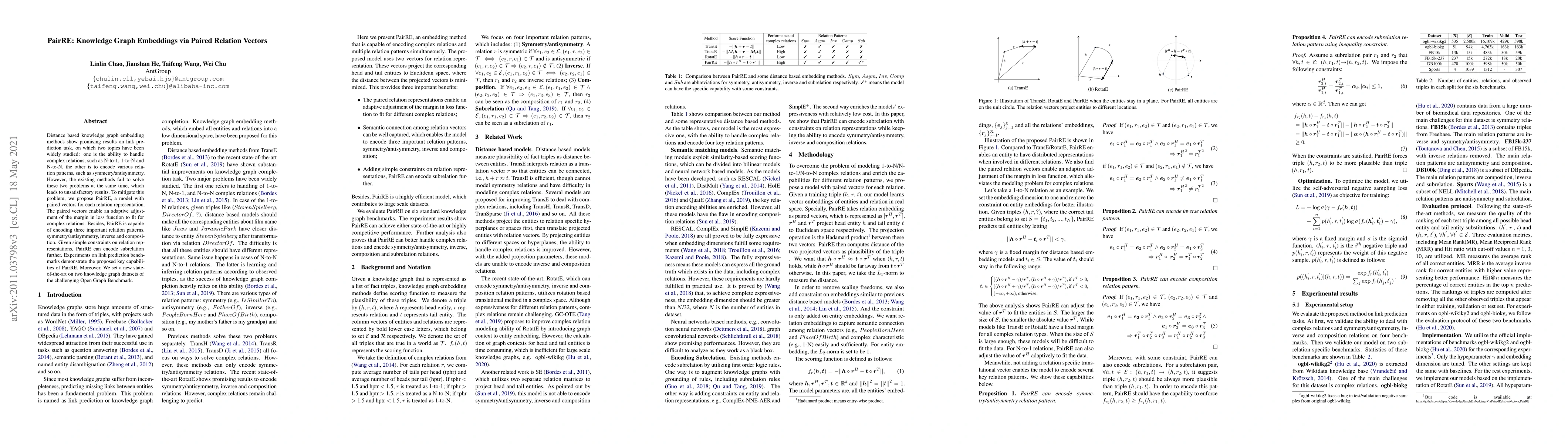 PairRE proposes a new model to handle complex relations in knowledge graphs by using paired relation vectors that adapt to different relation patterns and margin adjustments. It achieves state-of-the-art results on two challenging datasets.