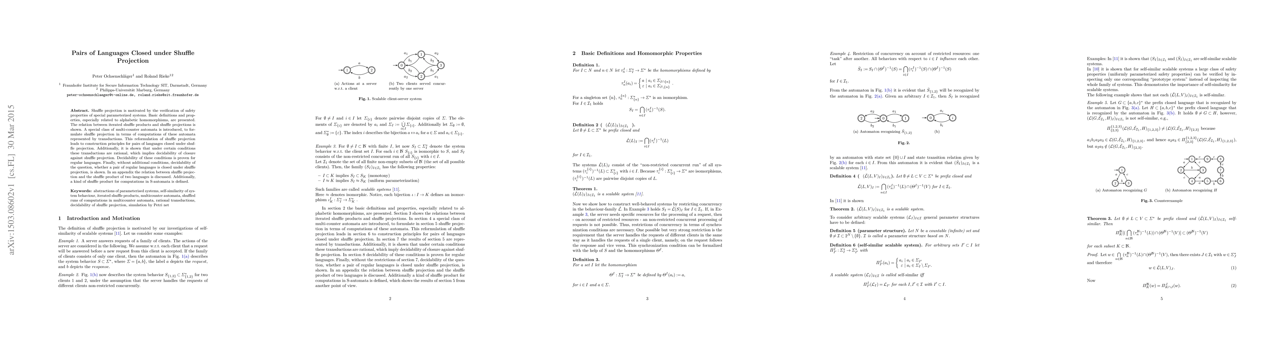 This paper explores shuffle projection, a method for verifying safety properties in parameterized systems, and constructs pairs of languages closed under this projection using multi-counter automata. It proves decidability for regular languages under specific conditions and generally for pairs of regular languages, and discusses the relation to shuffle products.
