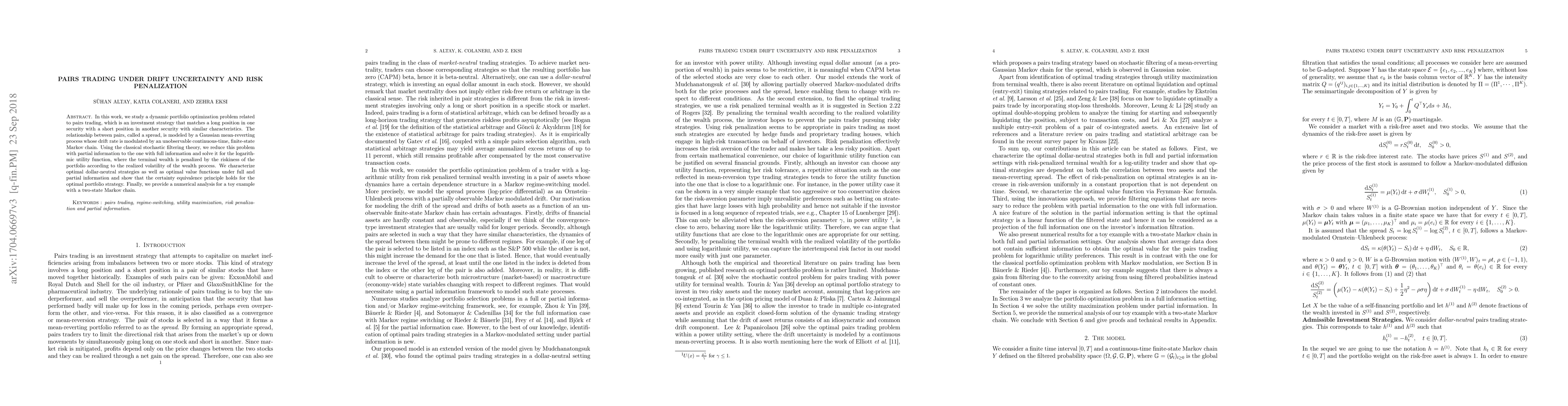 Researchers develop a framework for pairs trading under uncertainty and risk penalization, finding that the optimal strategy is dollar-neutral and adheres to the certainty equivalence principle.