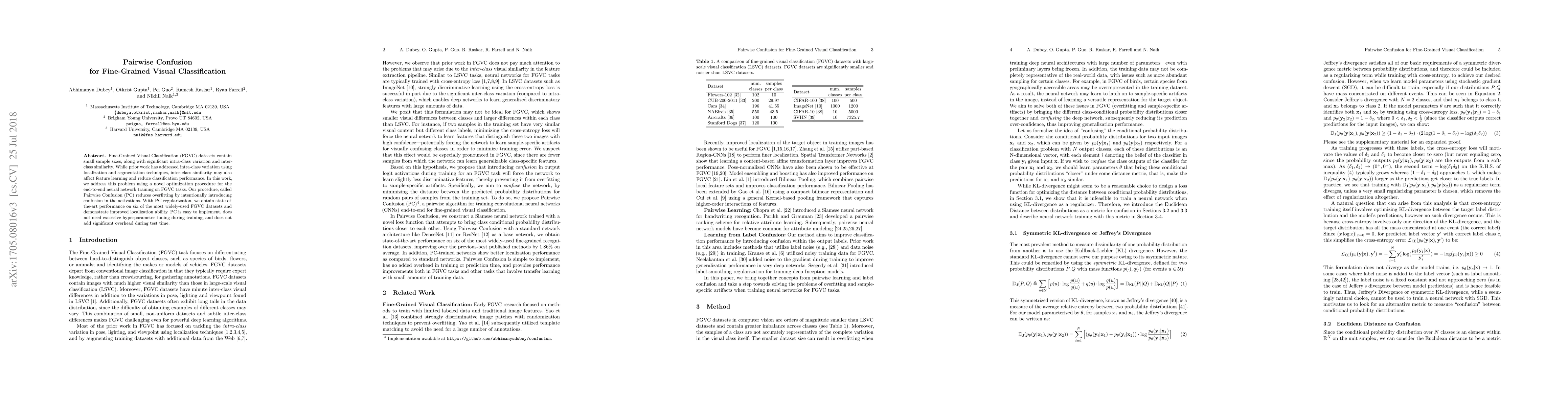 This paper proposes a Pairwise Confusion (PC) regularization method to improve fine-grained visual classification by reducing overfitting through intentional confusion in neural network activations. The method achieves state-of-the-art performance on several FGVC datasets and enhances localization ability without requiring extensive hyperparameter tuning or significant computational overhead.